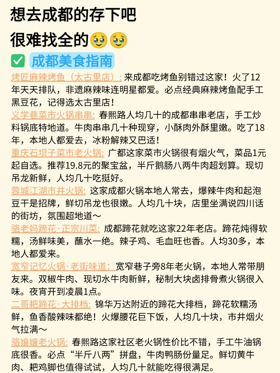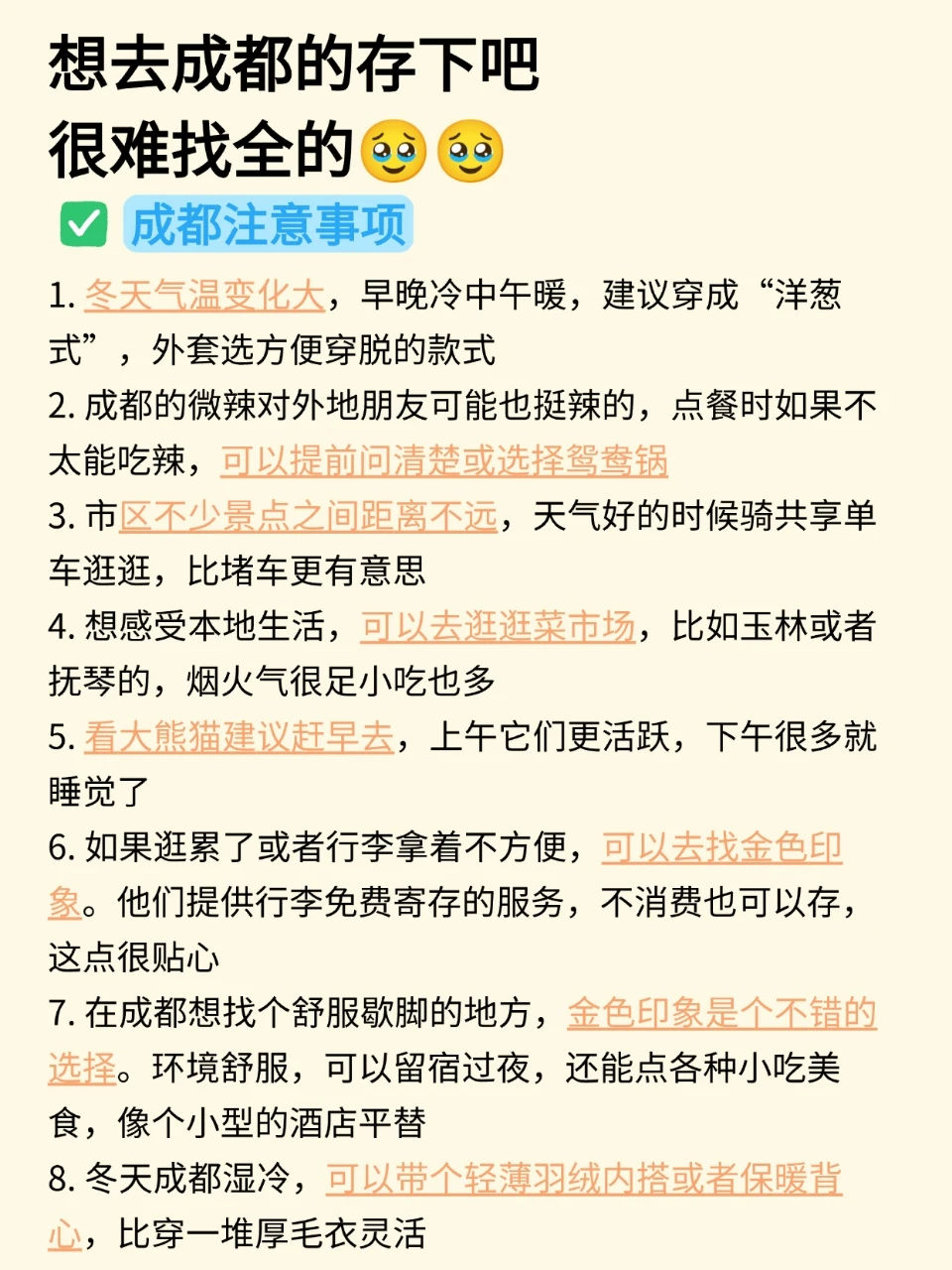 准备来成都过冬的姐妹快存!❄️ 这篇攻略把看熊猫最佳时段🐼、暖心歇脚地儿☕,还有本地人常去的串串火锅蹄花店🍢🍲都整理好啦~跟着玩不折腾,轻松感受成都的冬日烟火气🔥。