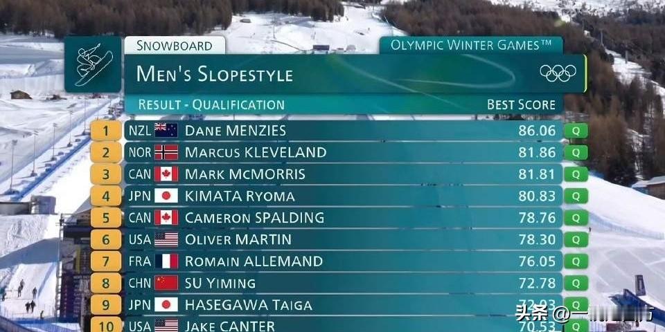 米兰冬奥会单板滑雪男子坡面障碍技巧预赛,三位选手已经出战过大跳台的中国选手苏翊鸣、葛春宇和杨文龙再次出战,其中北京冬奥会该项目银牌得主苏翊鸣稳定发挥,首轮两次完成1620的高难度动作,拿到70.83分,第二轮又拿到更高的72.78个分,最终排名第8晋级决赛,将冲击本届冬奥会第二枚奖牌。而杨文龙和首次参加冬奥会的19岁小将葛春宇都出现失误,仅拿到20分左右,最终分别排名第22和第28,未能晋级决赛。