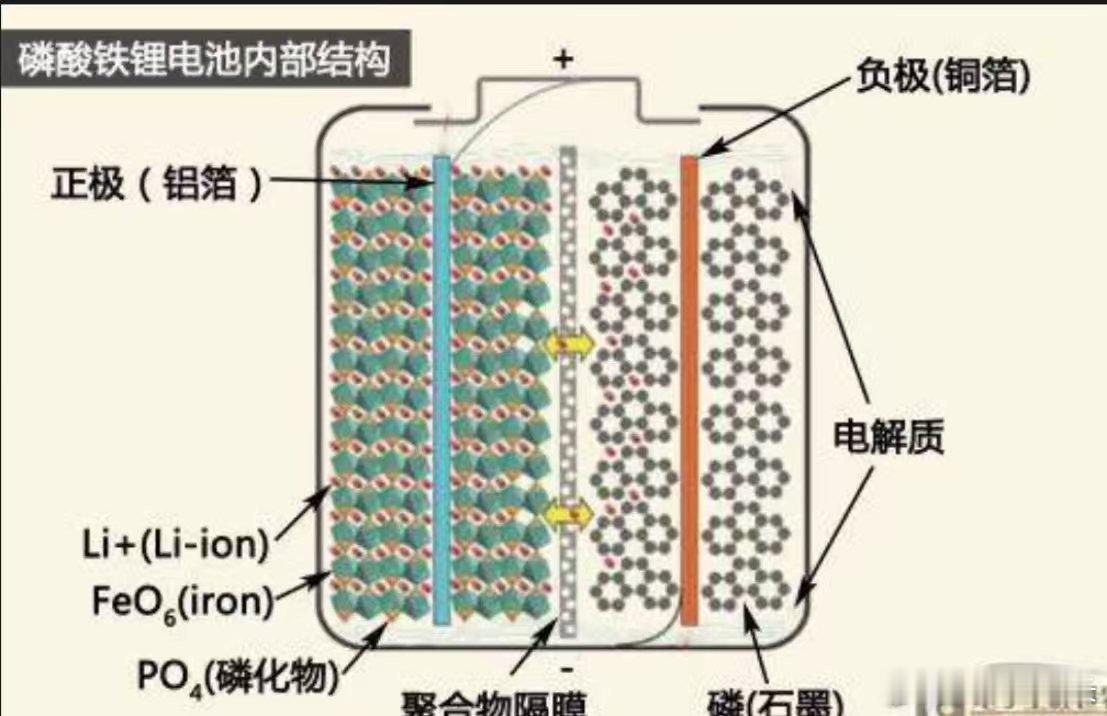 电解液 → 六氟磷酸锂 → 正极 → 负极 → 隔膜 → 铜箔