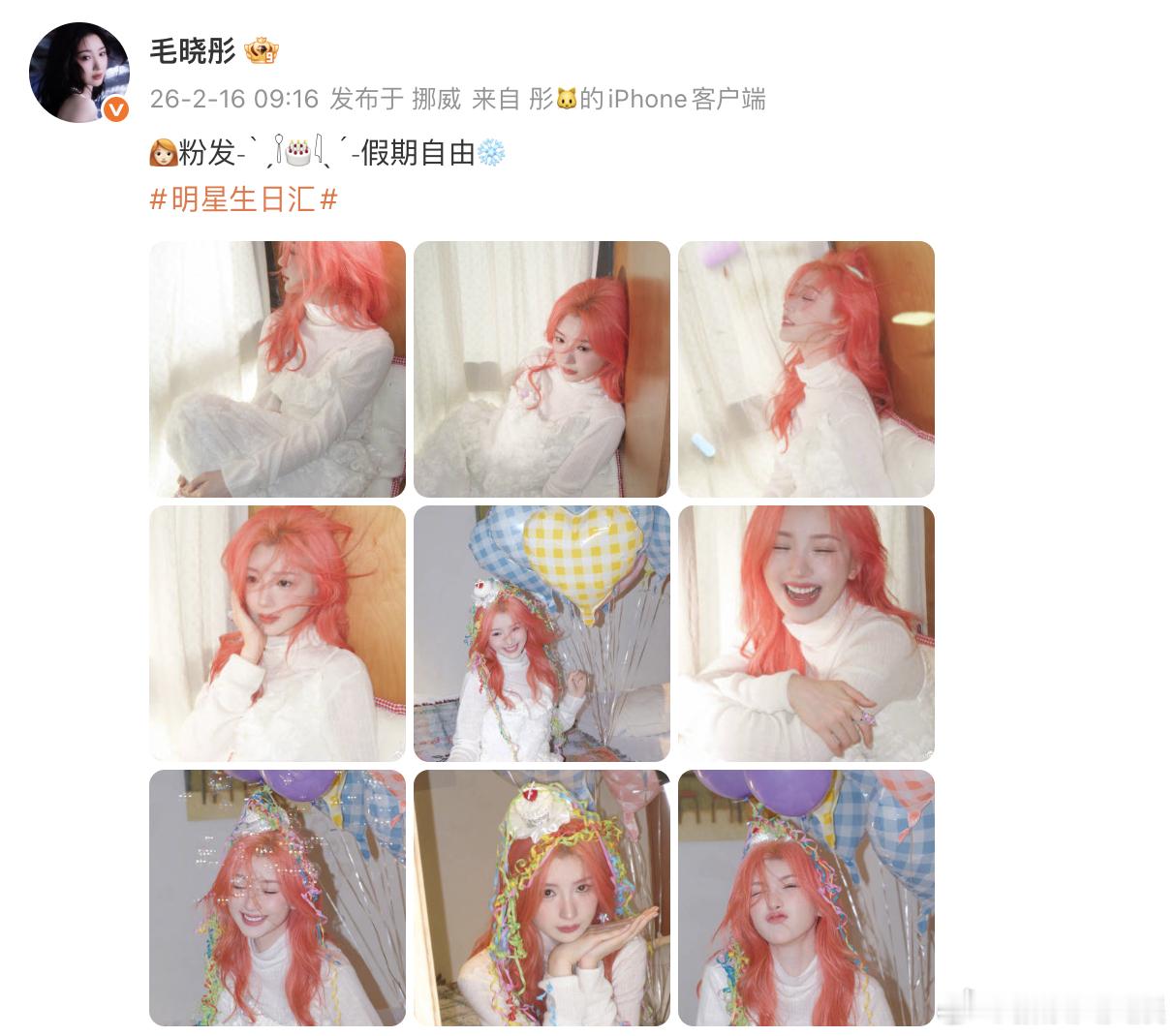 毛晓彤粉发造型 毛晓彤生日晒粉发,好好看啊!