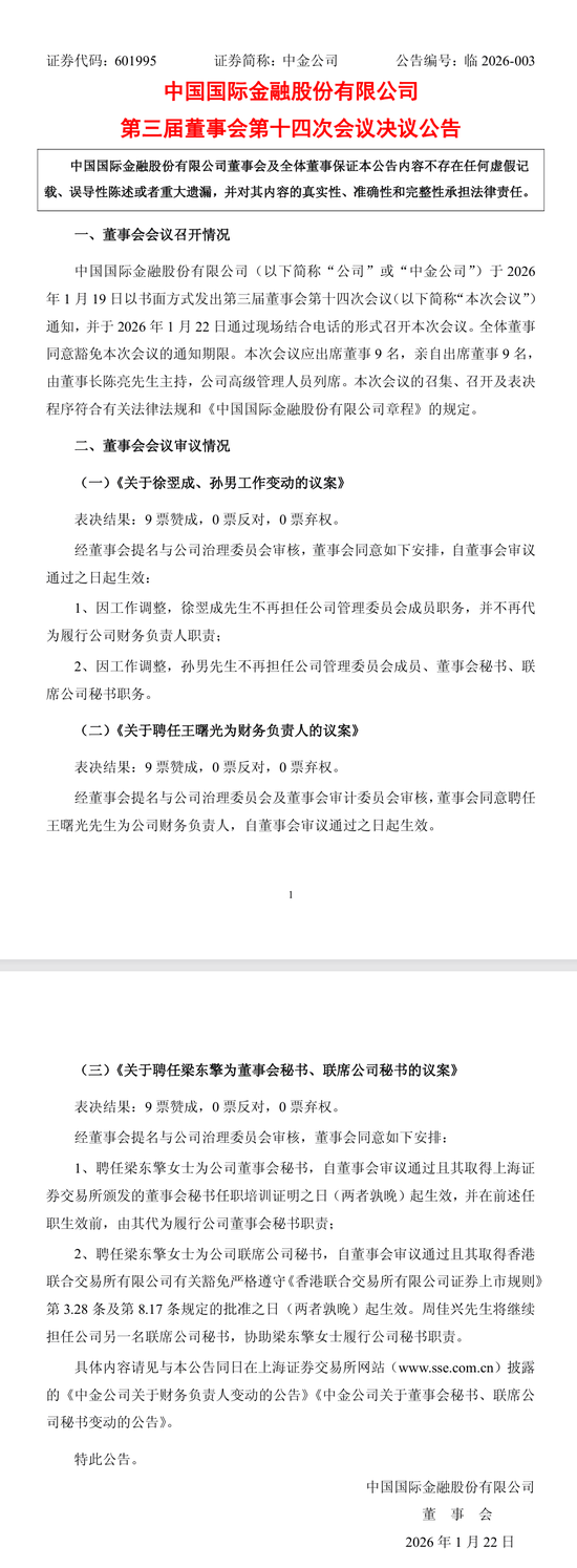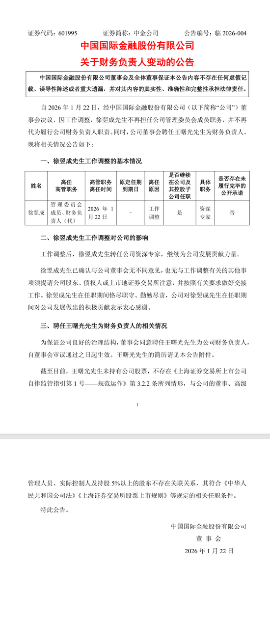 中金公司为了让决策更快、业务转型更顺,让大老板亲自管财务,同时把一位80后女将推向前台负责对外发声。整个过程合规、平稳,但暗含着加速转型的决心。