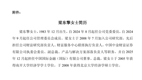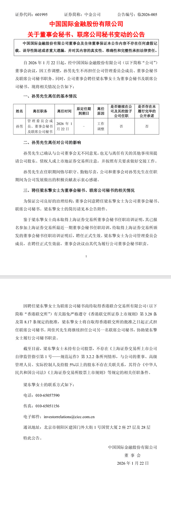 这位新董秘之前一直做财富管理业务。让她去负责跟投资者沟通、发公告,可能暗示着公司未来要更看重财富管理这块业务,想让外界多了解中金在这方面的布局。同时,这也算是给年轻人让位,推动管理层年轻化。
