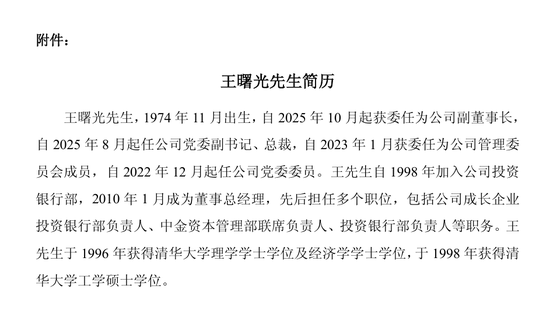 总裁亲自管财务:王曙光以总裁身份兼任财务负责人,等于“一把手”直接抓钱袋子,以后花钱决策效率会更高。