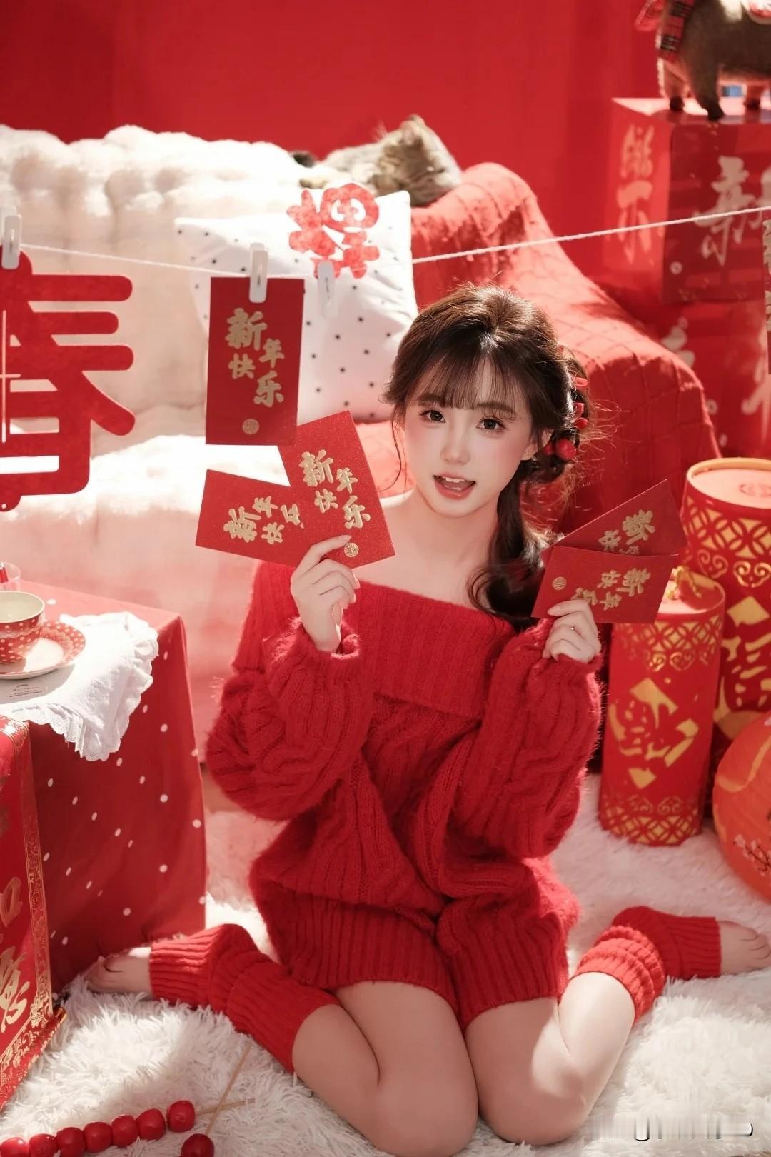 新年快乐,红红火火!🎉💕晒一晒你心目中的女神 新年都如意 合家开心过新年 新