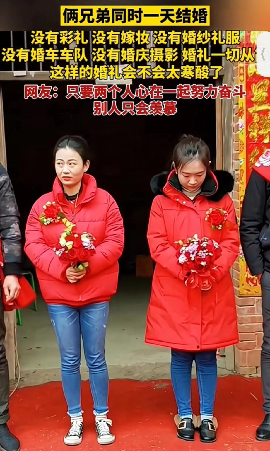 俩兄弟同一天结婚,两位新娘没穿婚纱,没有彩礼没有嫁妆也没有婚庆车队,简单朴素的就