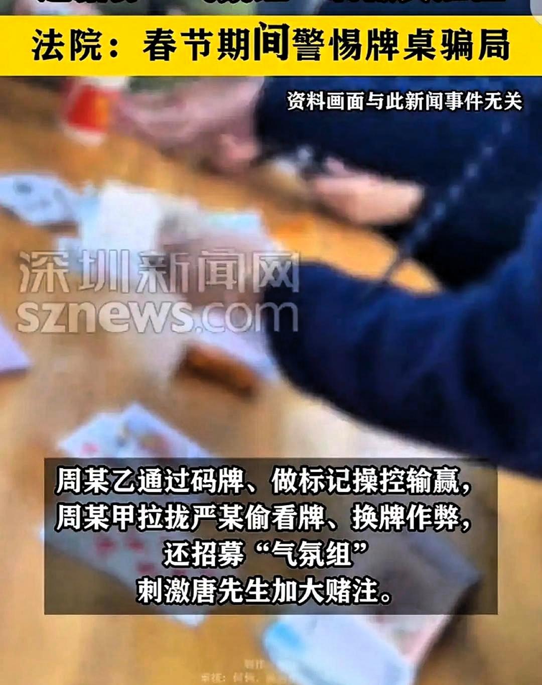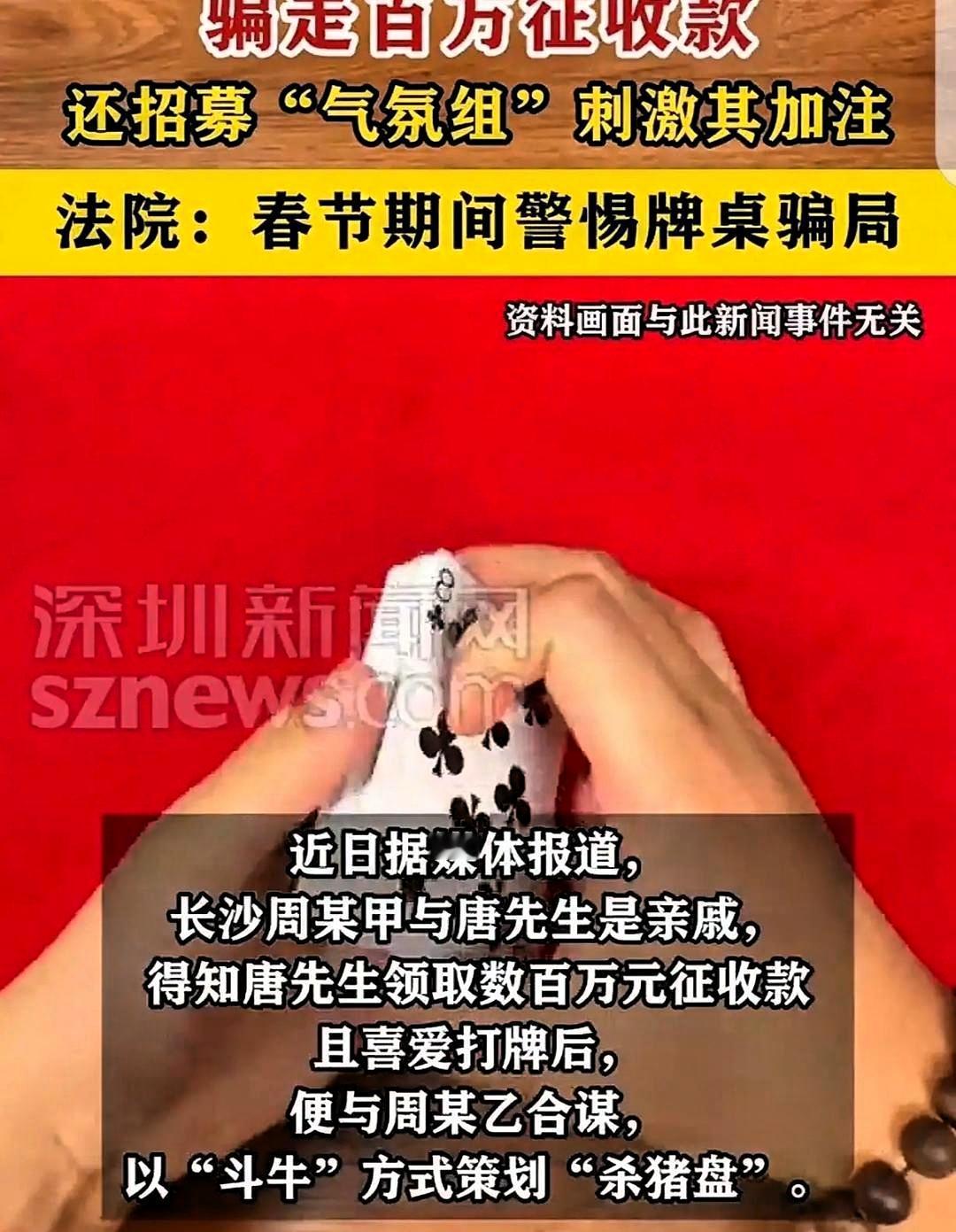 拆迁款刚到手,万万没想到!遭遇亲叔伯设局连骗五个月,175万没有了! 在2026年的2月,长沙的唐先生拿到拆迁款几百万元后,就开始经常去打牌,他没多想这件事,只觉得亲戚和朋友一起玩,能图个热闹。 没想到,堂兄周某甲早就盯上了这笔钱,他拉上周某乙那些人,通过做牌、偷看底牌、安排气氛组哄抬赌注这些手段,在五个月里骗走了175.12万元,其中60万,唐先生中途察觉不对劲,及时收手,没让骗子得逞。 案发后警方查明情况,施骗的人都是平时称兄道弟的自己人,周某甲等人被法院判刑,坐牢时间从三年到十二年不等,还要交罚款。 你们相信,在你们身边,那些最熟悉的人吗?
