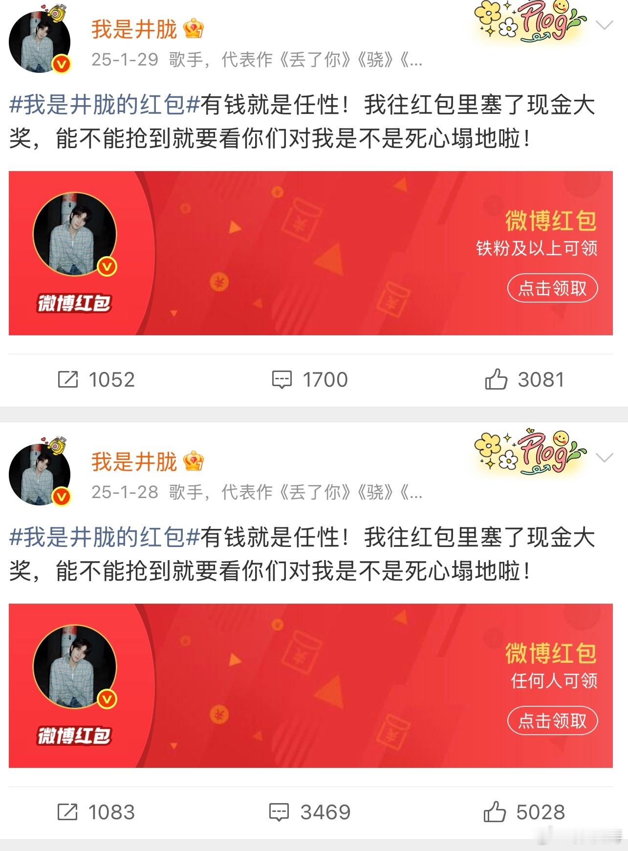 井胧 晚上我再发红包 新春第一封春晚大赏的红包来了,评论区说自己晚上还要继续发~继续等着这个小井胧了!新春茶话会