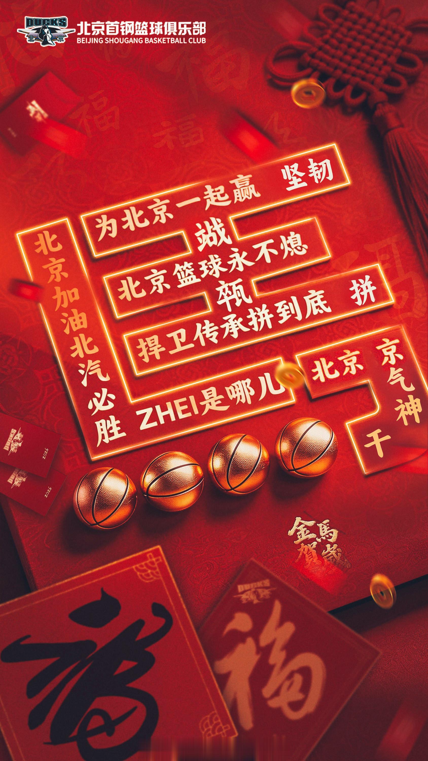北京首钢篮球俱乐部给大家拜年啦!
