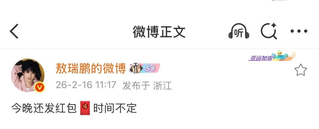 敖瑞鹏今晚还发红包时间不定敖瑞鹏预告今晚还发红包!!就这个敖子大方 春节刷到宝了