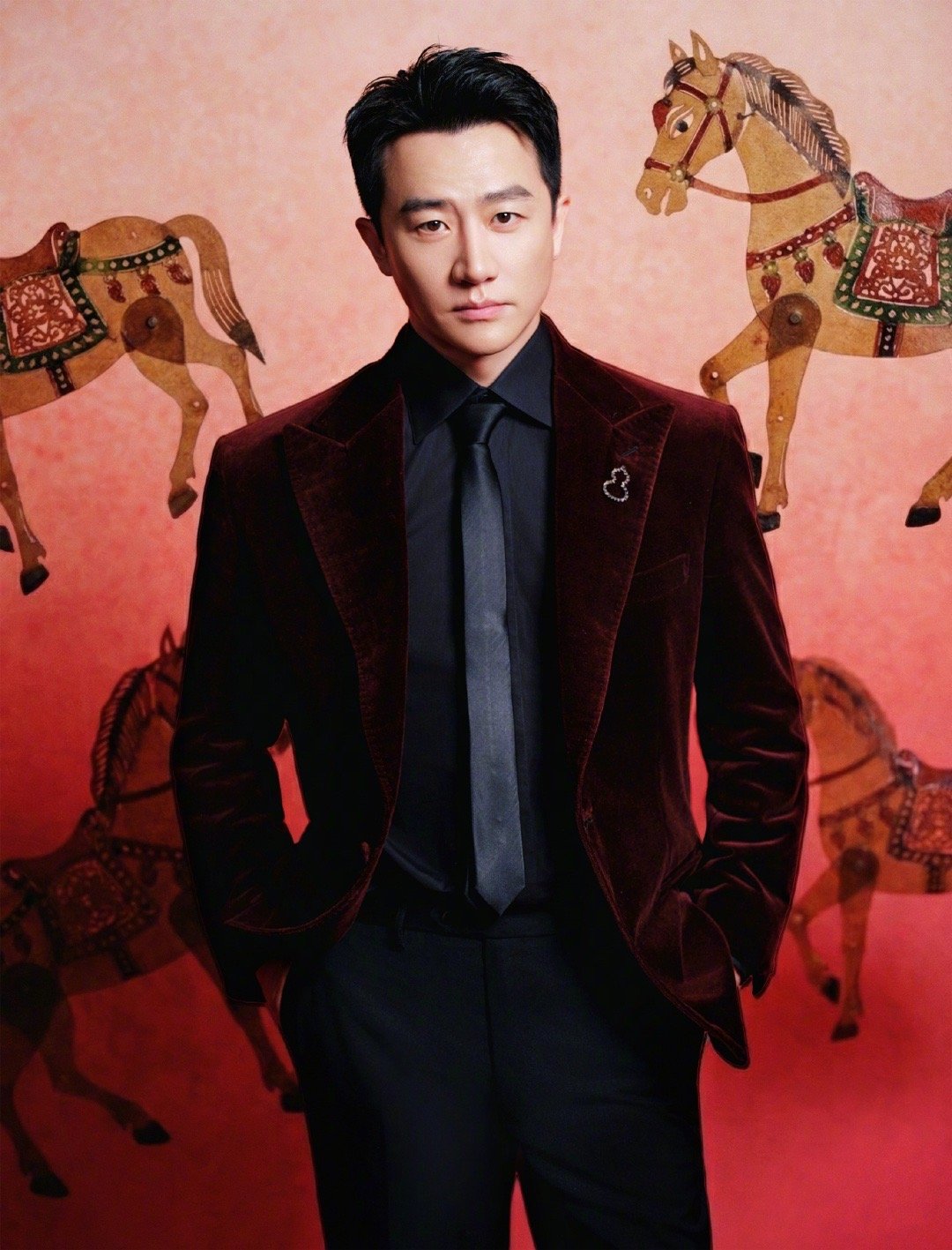 黄轩 今天是酒红色 黄轩今天酒红西装太可了!复古丝绒质感,矜贵高级,喜庆氛围拿捏得恰到好处。这身造型既有节日气息又不失优雅,稳重又浪漫,今晚舞台见!