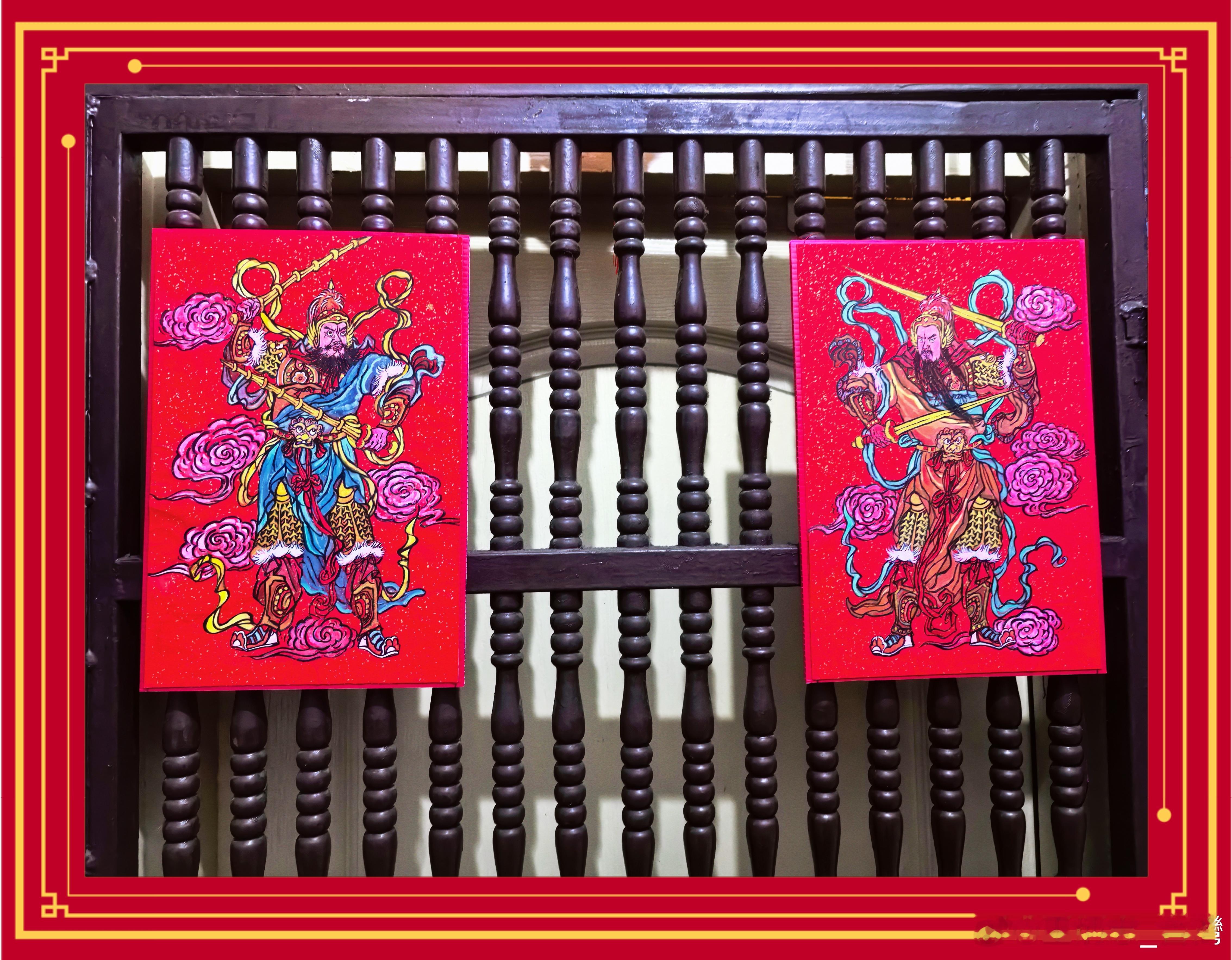赶在除夕日,换上新春联,安奉新门神!尤其这对门神图,是家里领导亲手绘制,威风凛凛