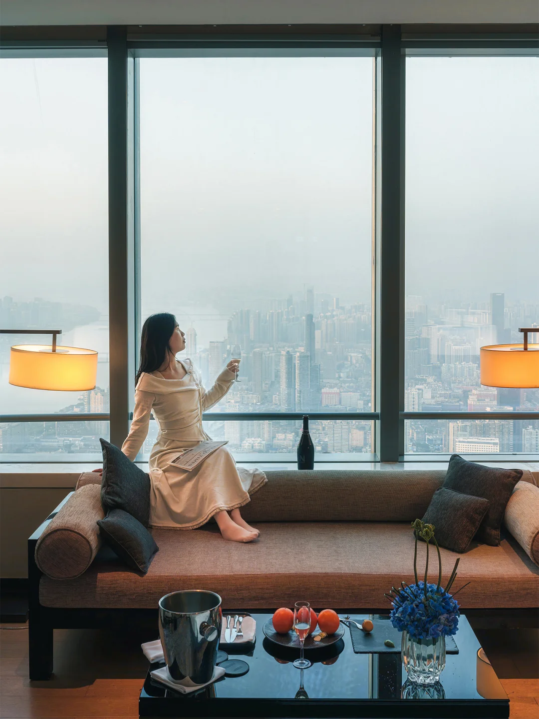 ✅P8.11.12.:93楼长沙尼依格罗酒店大堂,设计感满满!这也是长沙的蕞高楼和Zui高层,俯瞰整个长沙城市风景,视野绝佳。我们住的房间窗景正对江边,城市与湘江,🌄日落和晚霞,城市的万家灯火,每1️⃣幕都美到不行!!楼下就是国金,前面就是解放西路,逛吃游玩都敲方便~~
