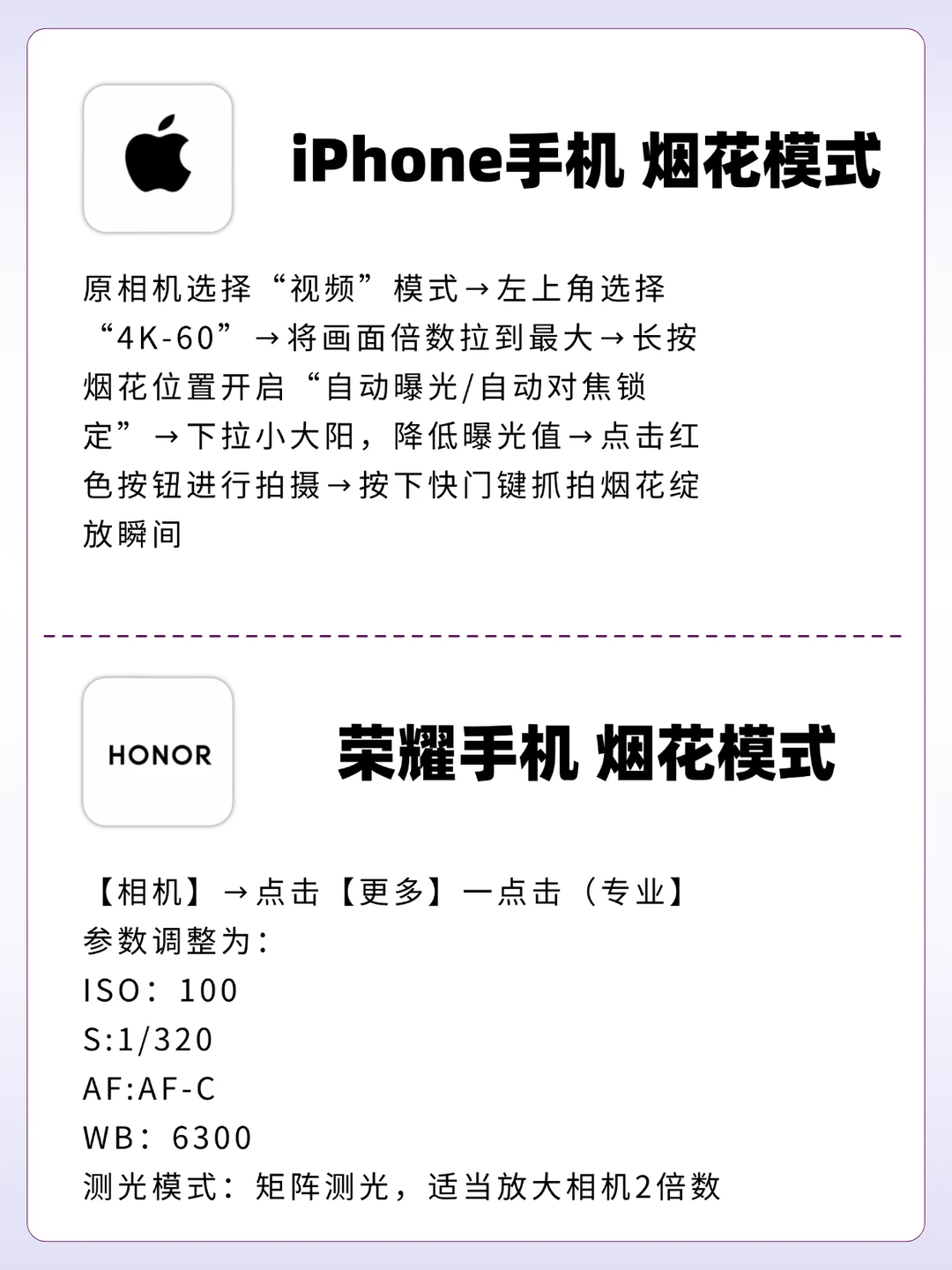 这就是今天整理的热门旗舰手机拍烟花模式,快叫上你的小伙伴一起来学怎么拍出好看的烟花🫵