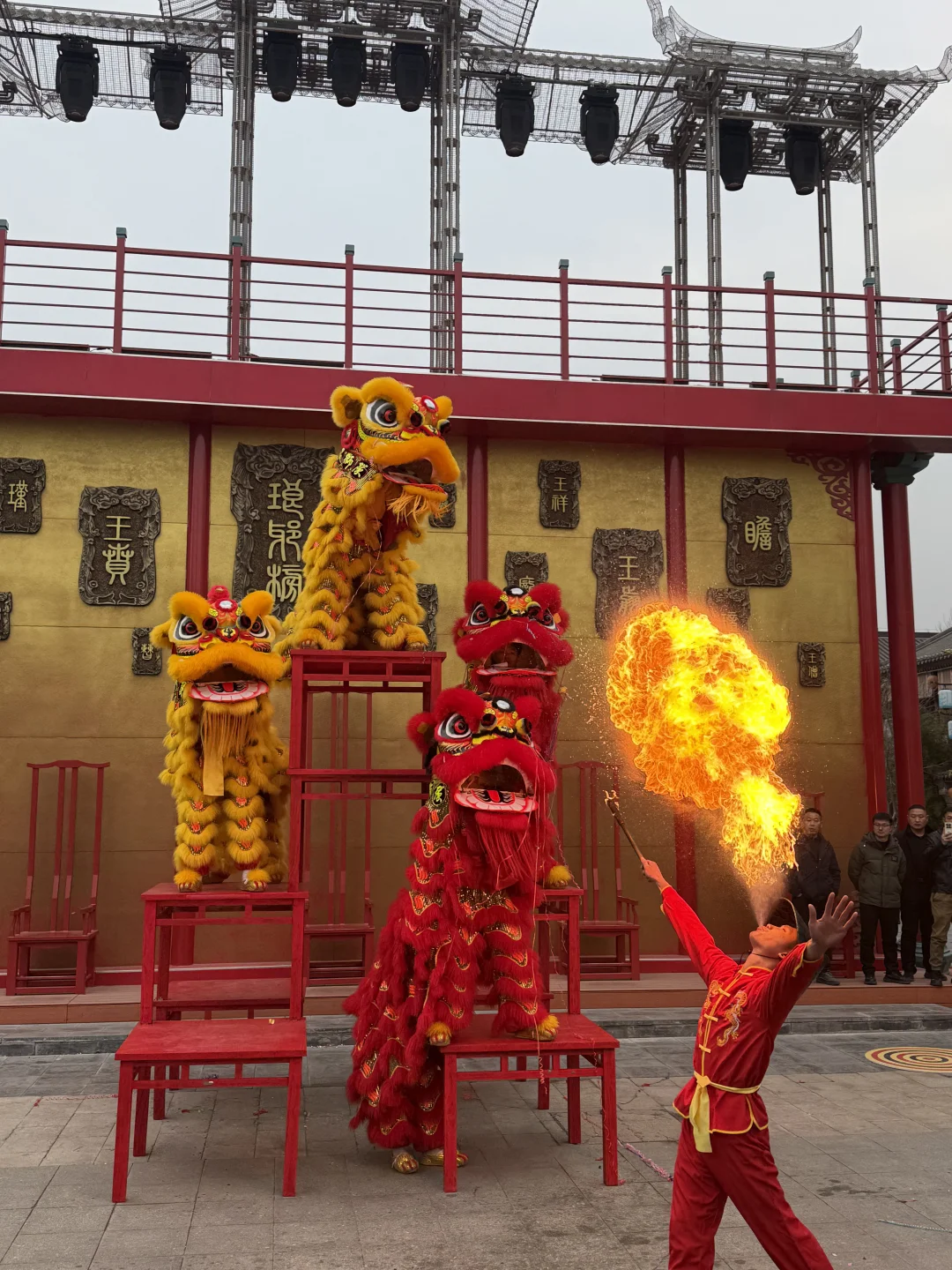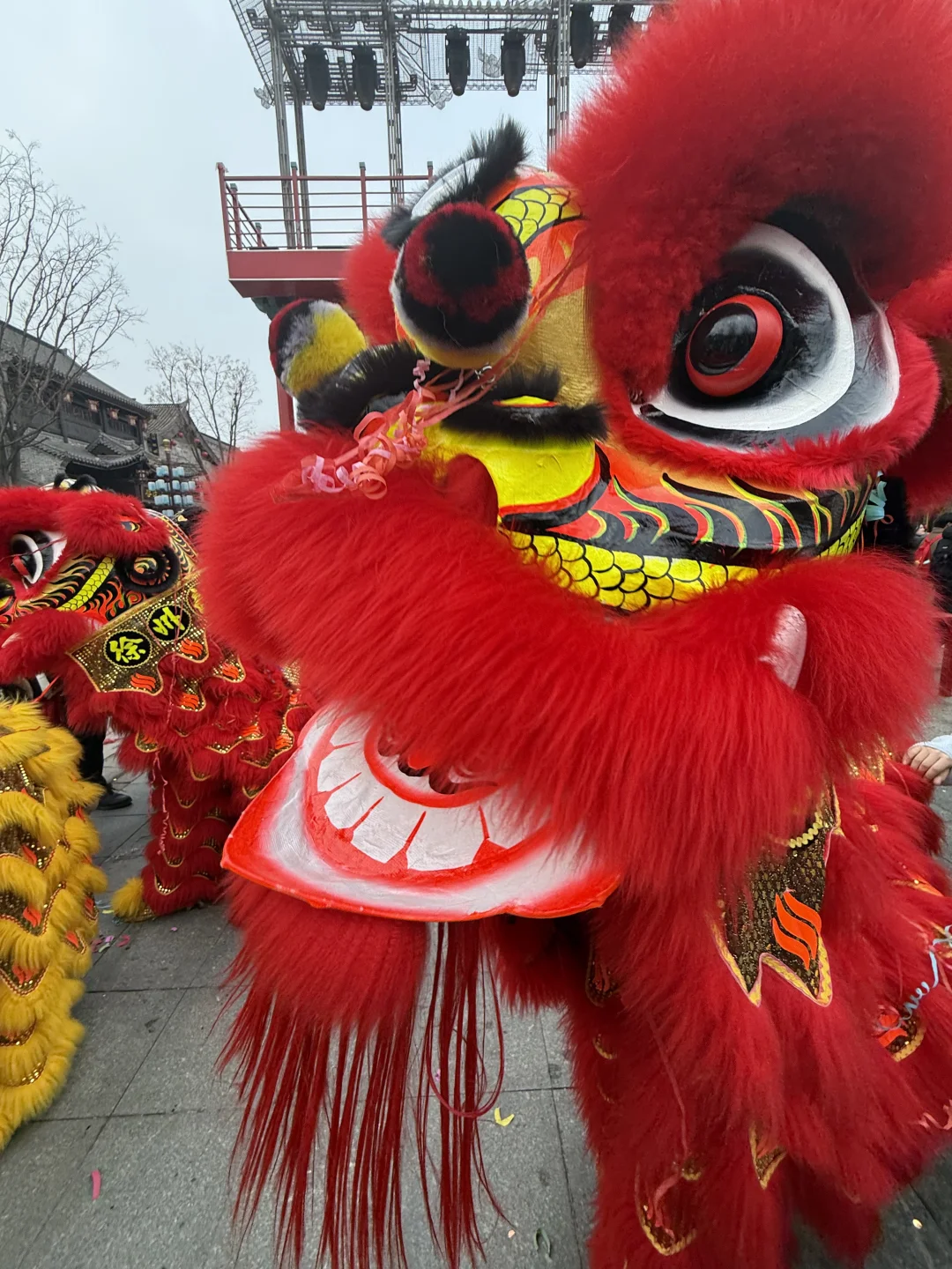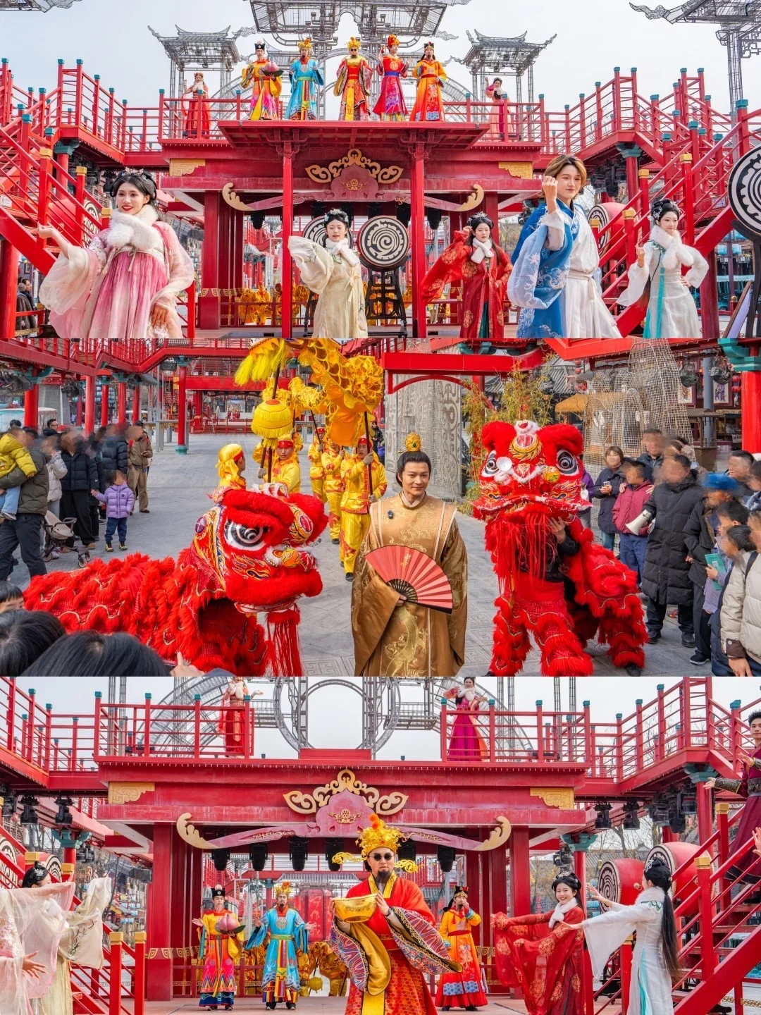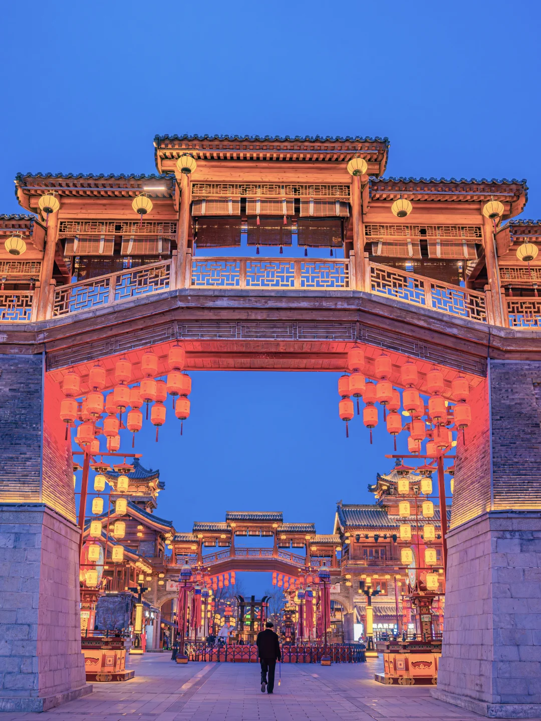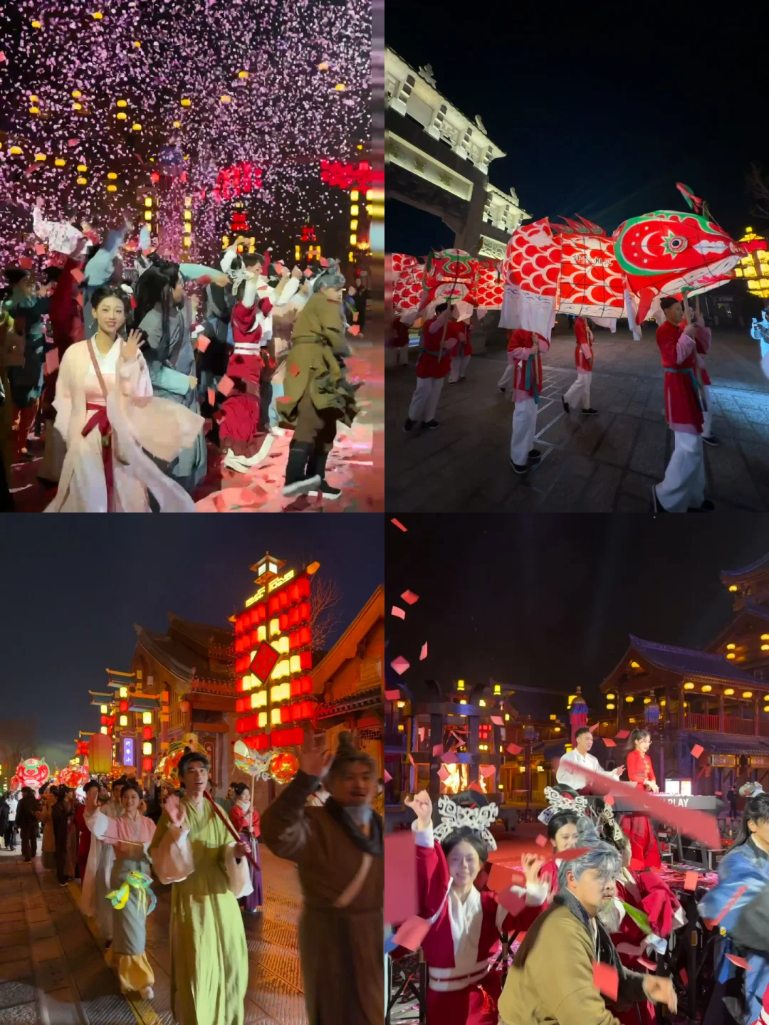 提一盏鱼灯跟着队伍走,红廊挂满花灯,像穿越进了唐宋上元夜。