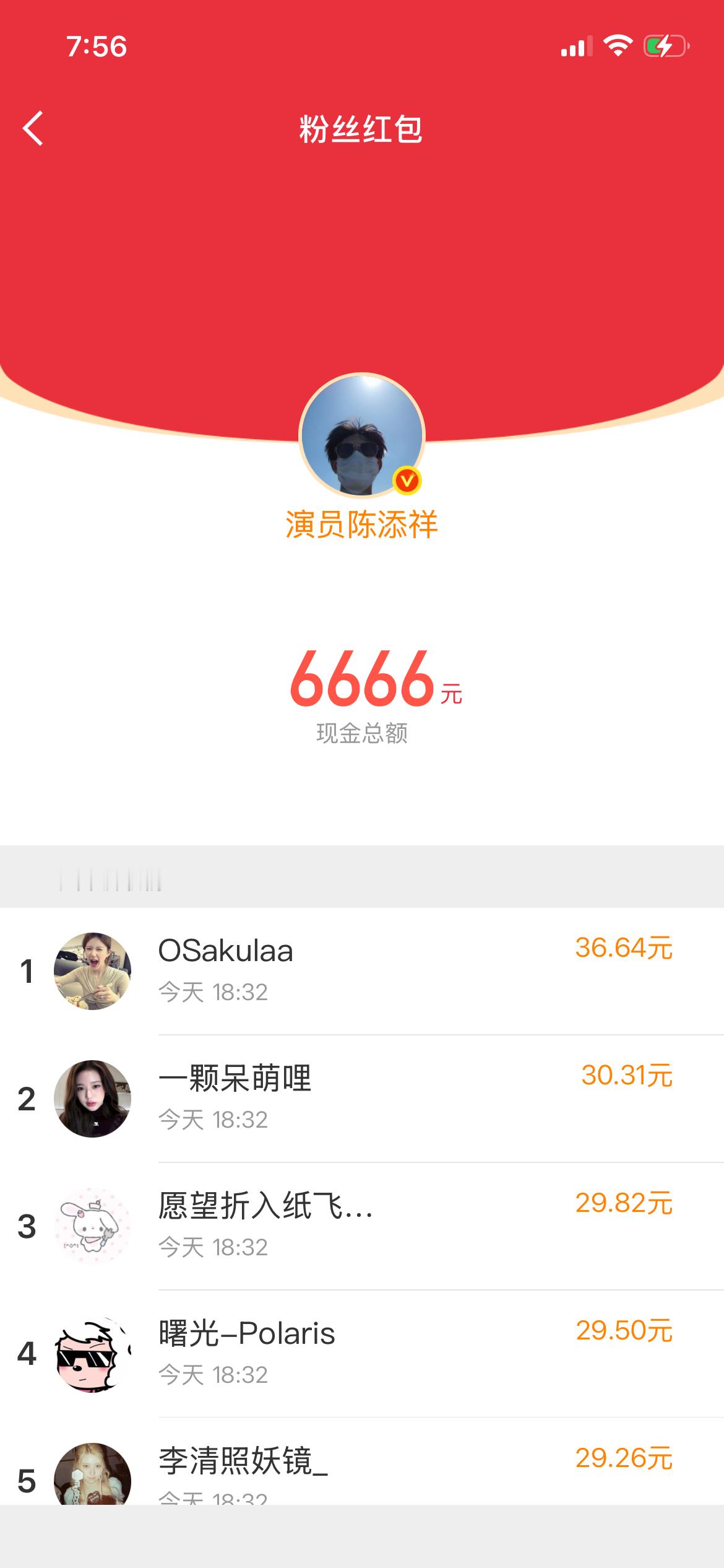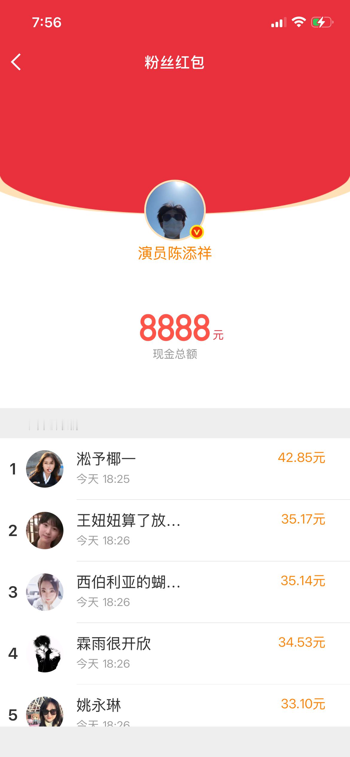 30分钟,陈添祥哐哐哐三个红包🧧🧧🧧:8888+6666+8888。虽然一分没抢到,甚至替他心疼一丢丢,但大爱和服气这份大气,利落,爽快的直男气❤️❤️❤️👍👍👍 明星红包