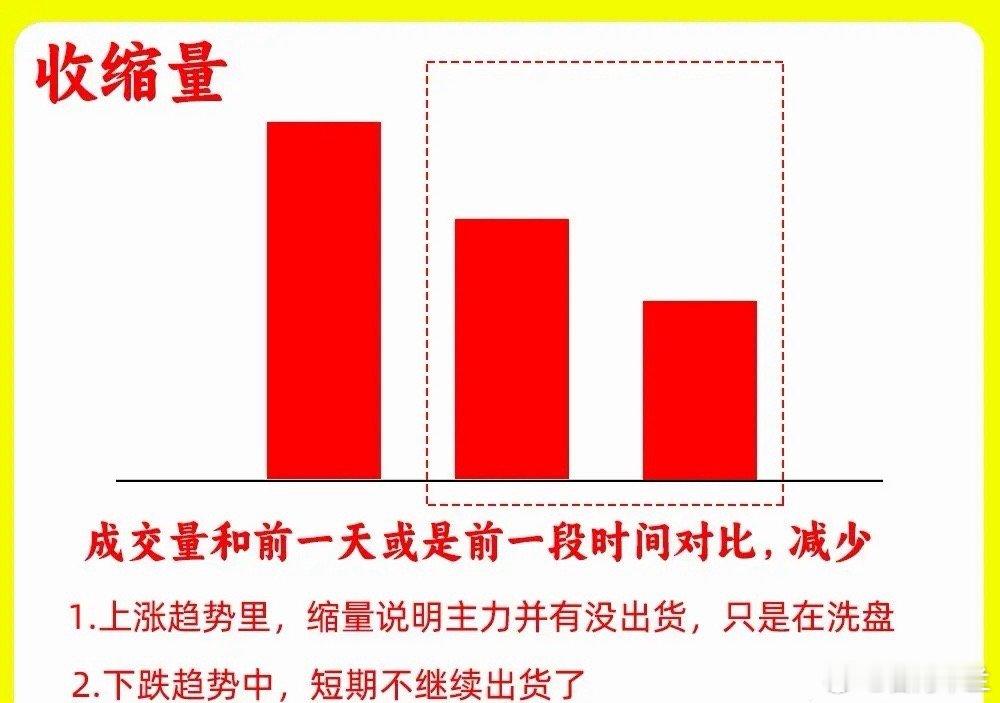 注意了!在技术分析里,最为重要的一个指标那就是成交量,长短不一的红绿柱代表着什么呢?有人把成交量代表着汽车有油门,是股价上涨动力来源。所以看懂成交量才能更好的看懂市场情绪变化。今天我就分享六种成交量形态,短线选手一定要认真看完还是老规矩,点赞收藏或评论888支持一下,我每天分享炒股干货,以免以后想温习找不到了一、天量成交量突然性的爆涨,是一段时间里最大的量,那在K线里一般就会是大阳线、大阴线或是有很长的上下影线,要知道成交量越大,说明此时的分歧就很大。一部分人看多,一部分看空,筹码得到换手。一旦在高位出现这种量能,那就要谨慎了二、扩涨量股价连续上涨,成交量同步逐步放大,这就是量价齐升,说明每天的买盘越来越强,这是一种健康的量价关系。等扩涨量开始改变,不在继续放大,说明上涨动力开始变弱三、凹字量也叫凹形量,这个形成成交量一般会主力洗盘的阶段出现比较多。成交量开始很大,开始逐步缩量,直至到地量出现,随后成交量又开始逐步放大,形成中间小,两边大的量柱四、收缩量成交量开始缩小,像一个下降的楼梯。说明此时的市场活跃开始变小,卖和买都是变小,那此时往上股价也会进入一个蓄势或是盘整的一个阶段。五、倍量成交量是前一天的两倍以上,就是倍量,倍量是主力行为。市场倍量模型有很多,最为经典就是倍量不穿。这种量柱在低中高都会出现,一旦是在高位出现,那就要小心六、缩倍量成交量是前一天的一半以上,说明此时的动力开始变弱,如果是股价回调洗盘阶段出现缩倍量,说明主力已经开始锁仓,如果这种形态是在下跌趋势里,那说明市场抛压突然大幅度变弱好了!以上就是成交量的六种形态,下方我们准备了对应成交量案例图。希望对大家有启发,也是最为基础的内容,一定吃透。我们下期内容再见