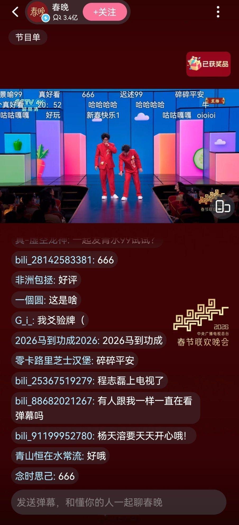 B站弹幕机器人全面入侵春晚笑到捶桌!2026春晚刚开始B站弹幕区就被实时打卡刷爆了,直接把直播变成了千万网友的在线派对这波手慢无的刷屏大战太真实,毕竟能在实时弹幕里占个坑,可不就是咱普通人专属的上春晚嘛🤣