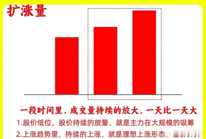 股价连续上涨,成交量同步逐步放大,这就是量价齐升,说明每天的买盘越来越强,这是一种健康的量价关系。等扩涨量开始改变,不在继续放大,说明上涨动力开始变弱