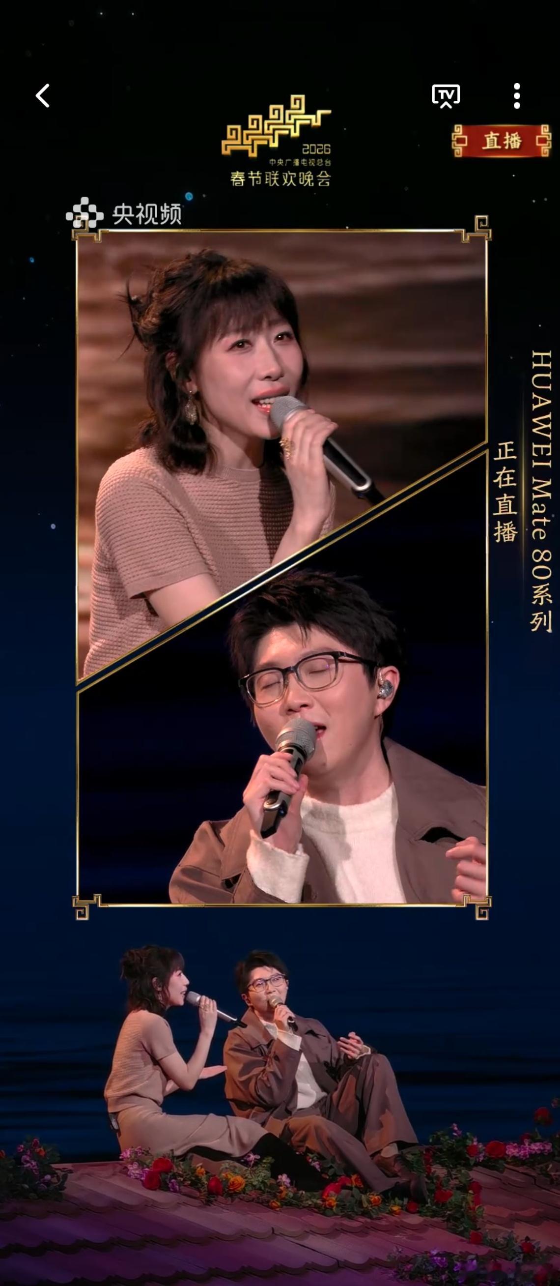 任素汐毛不易神仙组合 你还真别说,他俩这一块唱歌还真蛮好听诶。当然总台使用Mate80竖屏直播春晚的这个画质也是真心不错!
