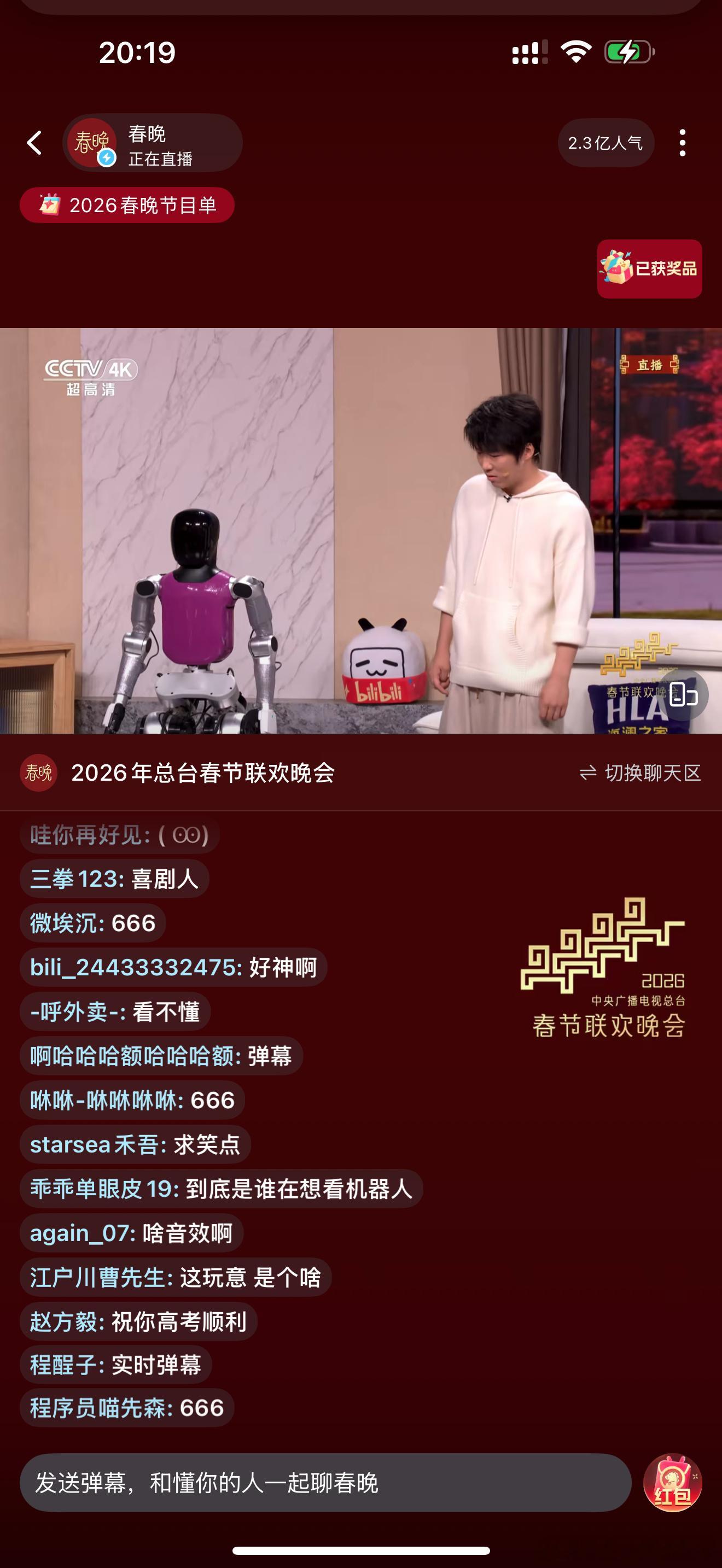 B站春晚开真实弹幕网友疯狂刷屏在B站开着弹幕看春晚,更欢乐更好玩,快乐加倍!!评