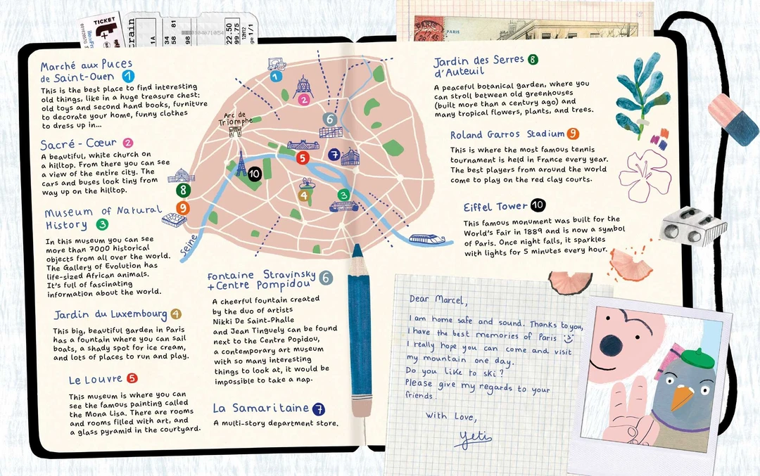 然而,耶蒂只有一天的时间!这是耶蒂第一次出国旅行,也是第一次见到一座城市,所以他来自巴黎的鸽子马塞尔为他制定了一份观光行程……还没到巴黎,耶蒂就已经因为长途跋涉而筋疲力尽,急需好好睡上一觉。