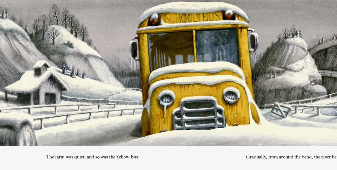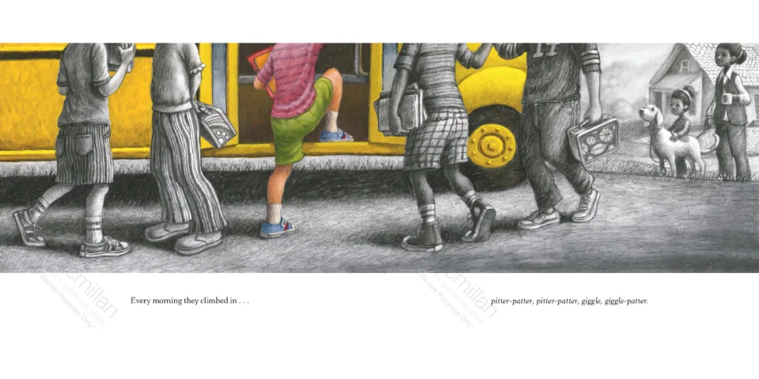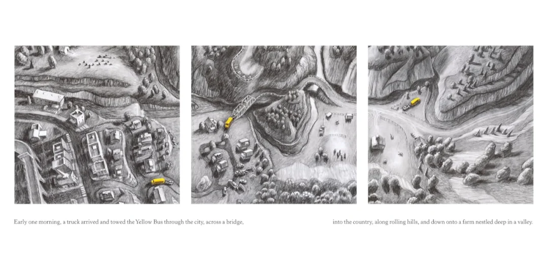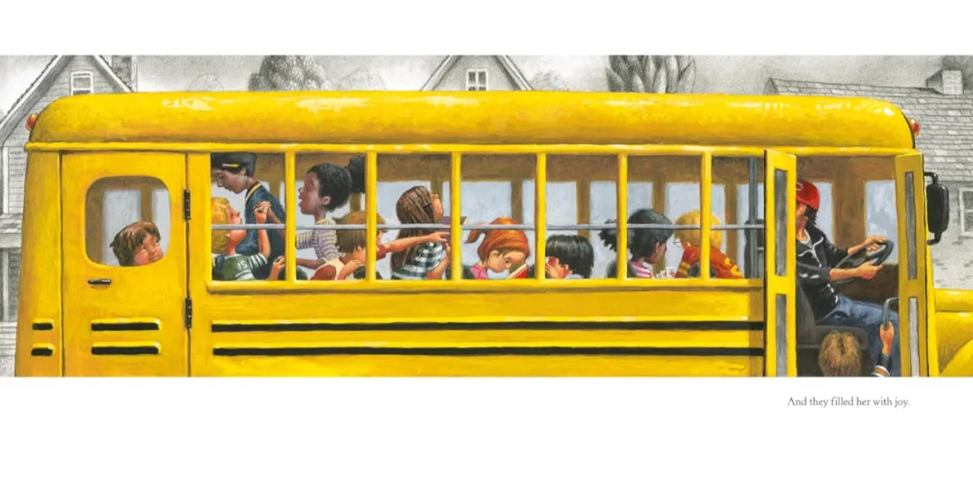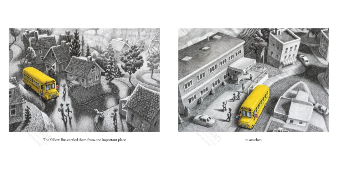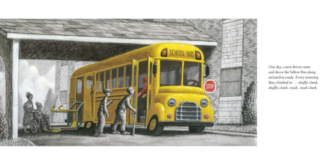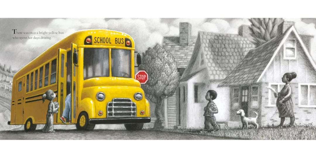 ✏️这是一本励志且让人充满希望的绘本故事,透过画面中刻意营造的黑白与黄色巴士的对比,讲述了一段旅程中陪伴、变迁和坚持欢乐的主题,好比人的一生。