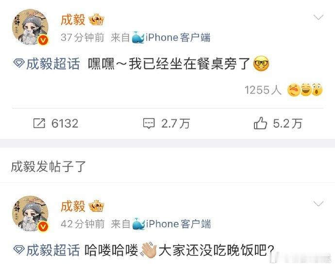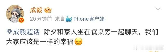成毅除夕空降超话 成毅除夕空降超话,分享年夜饭和家人一起聊天很幸福,说希望新角色