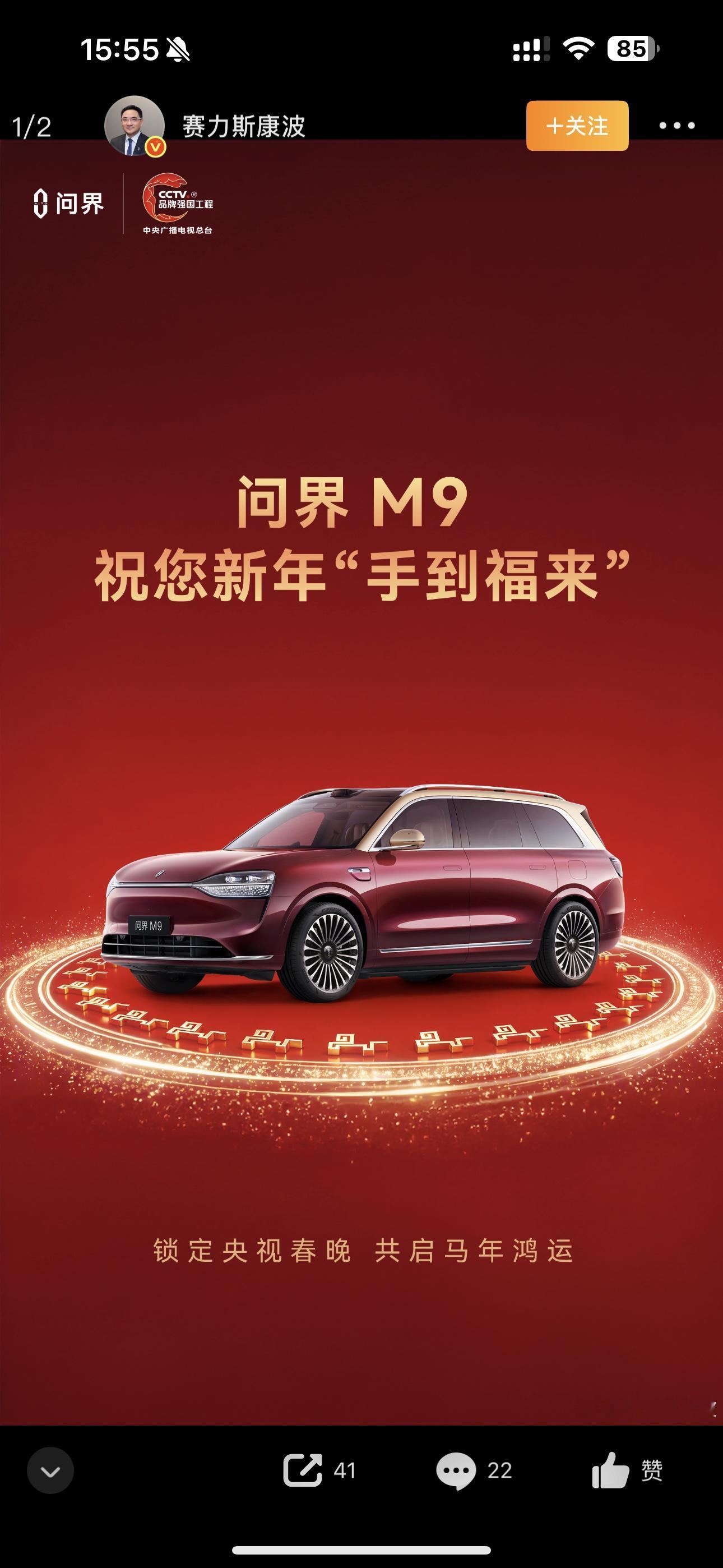 从2024年首次出现在主持人身边,到2025年780辆问界M9在重庆分会场大秀灯光科技;再到2026年马年春晚,与《智造未来》深度绑定,把北斗导航搬上舞台。