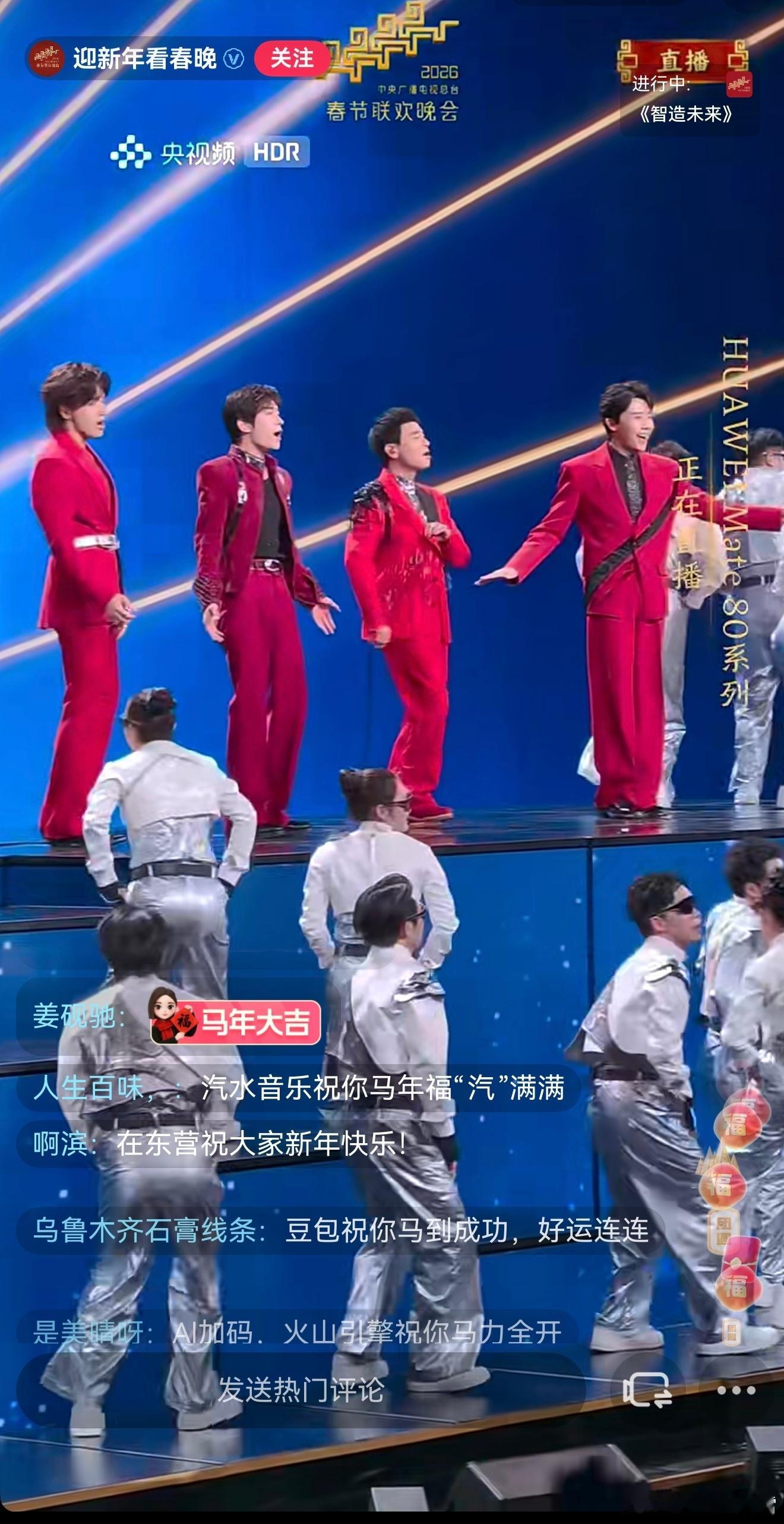 总台使用Mate80竖屏直播春晚,春晚史上第一次把手机拍的主舞台画面接入广播级系统,讲道理还挺新奇的,马年春晚华为出镜率属实高,看到华为的各种产品了吧