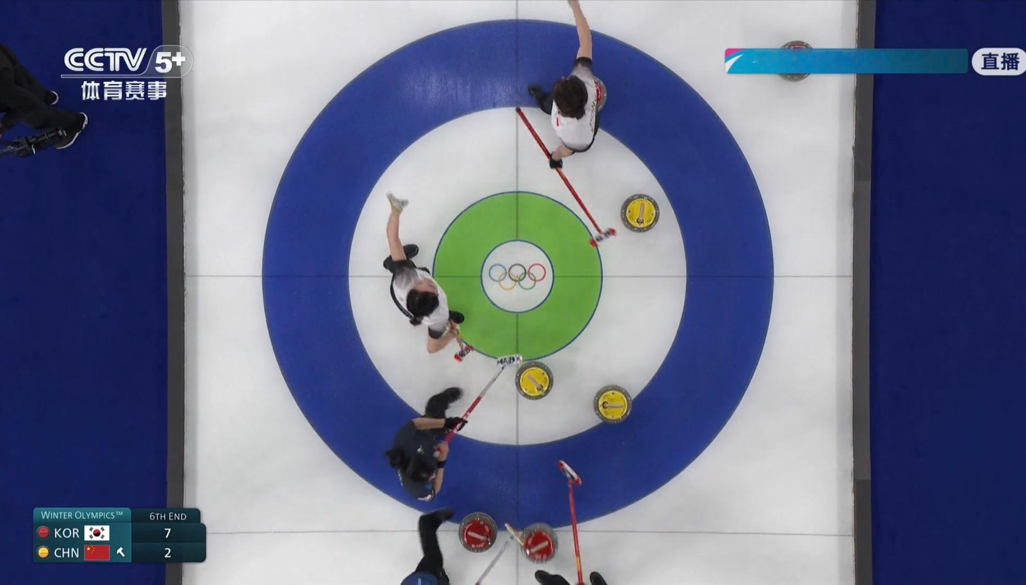 中国队抓住韩国失误拿到3分!六局后追至5-7!老妹儿加油💪米兰冬奥会冰壶女子团