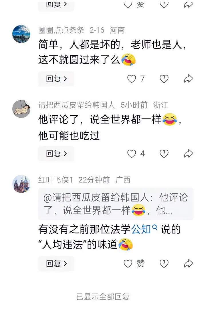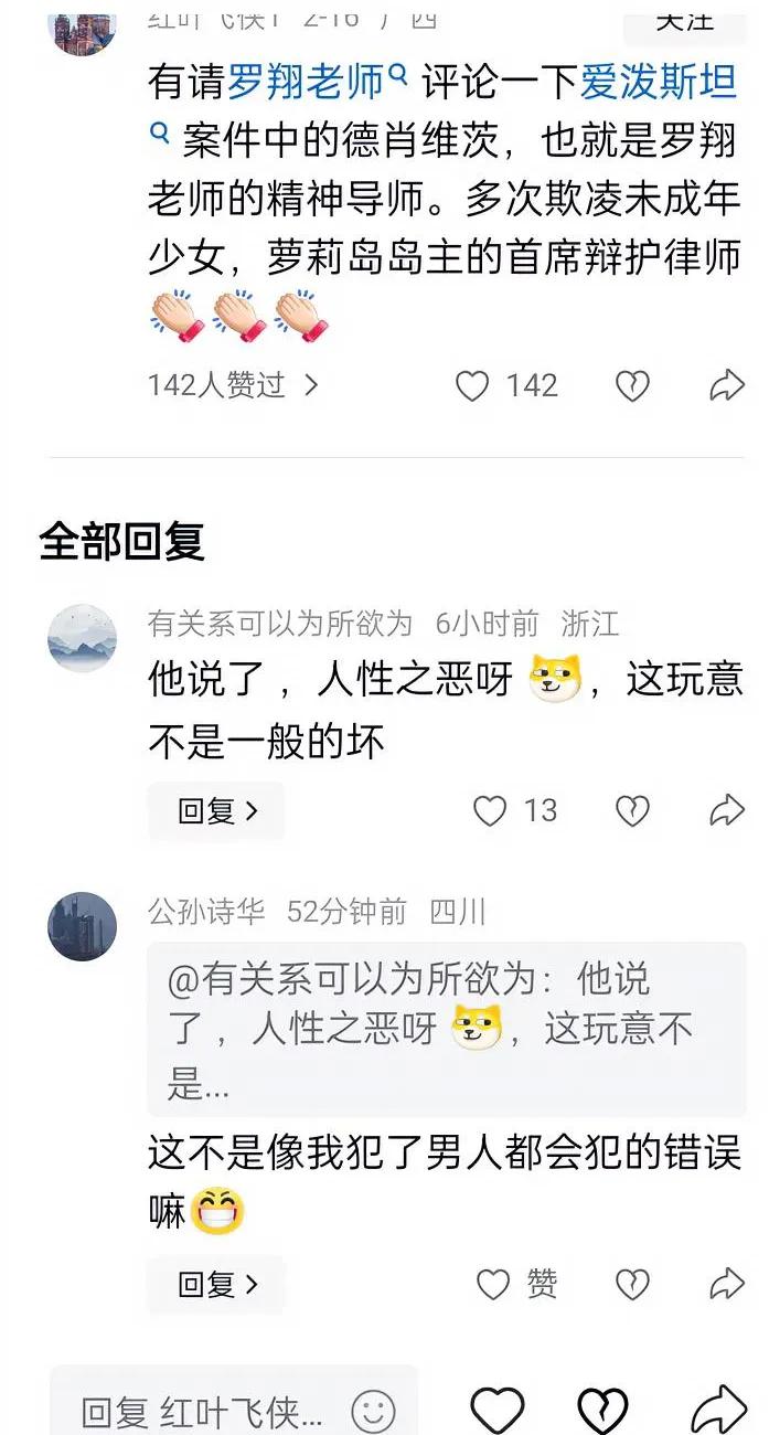 中国人做好事:别迷信偶像! 外国人做好事:文明灯塔,民主之光! 中国人出问题:这是民族劣根性! 外国人出问题:大家都一样坏! 罗圣这套双标玩得炉火纯青,根源从来不是道理,而是立场。 爱泼斯坦萝莉岛案震碎三观,德肖维茨多次登岛、为岛主辩护,深陷欺凌未成年少女丑闻,而他正是某些人口中的“精神导师”。 西谚说得直白:律师就是富人豢养的宠物,朝穷人狂吠,向富人摇尾。用专业技能为权贵脱罪,把法律变成特权保护伞,这就是他们鼓吹的“法治正义”? 有请罗翔老师评论一下爱泼斯坦案件中的德肖维茨,也就是罗翔老师的精神导师。多次欺凌未成年少女,萝莉岛岛主的首席辩护律师[鼓掌][鼓掌][鼓掌]