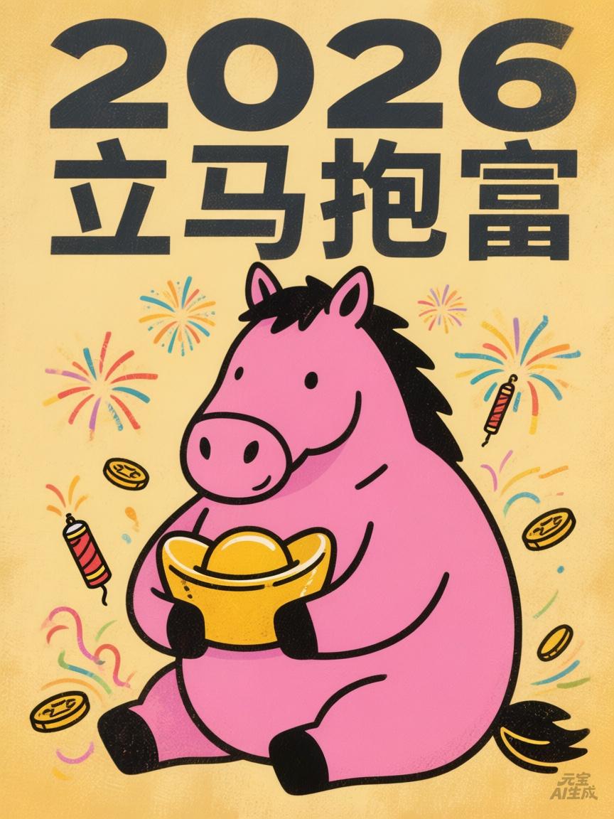 新年快乐,祝各位粉丝新年好运,财源滚滚来!大年初一 招福纳财 骏马迎春焕新潮