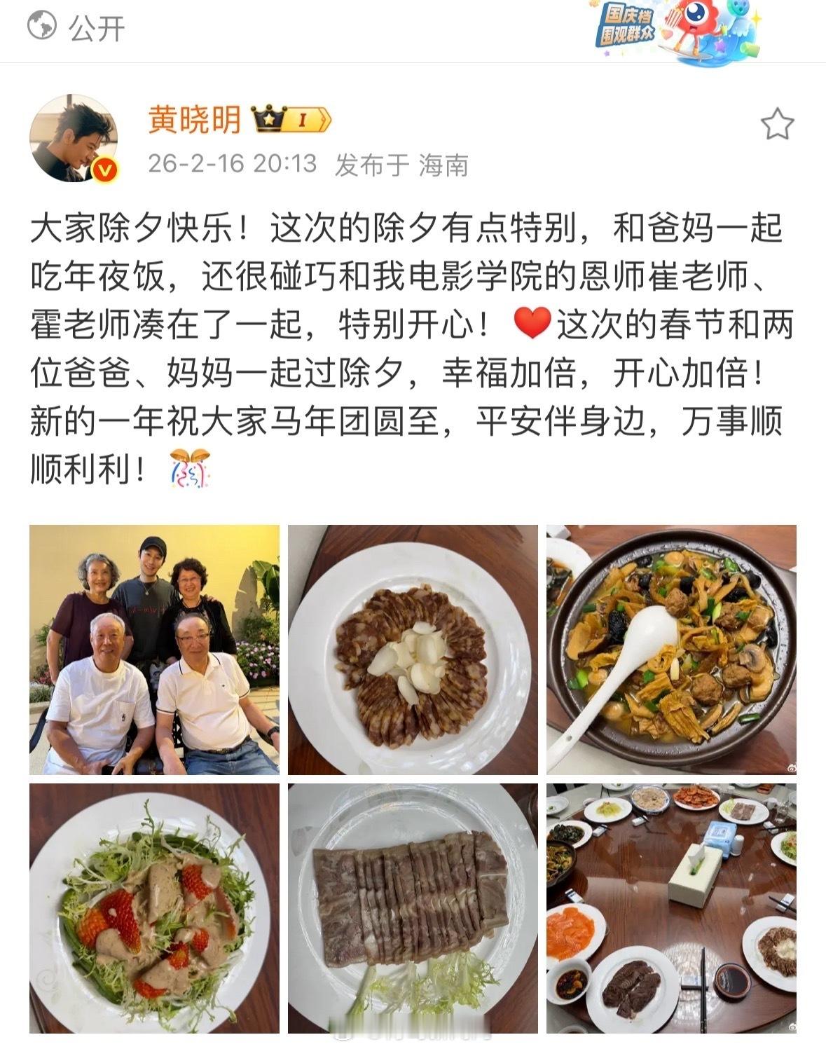黄晓明在海南陪父母过年 看到黄晓明这桌年夜饭我自己吐槽一下今年海南找一个好吃的馆子 确实不容易。。