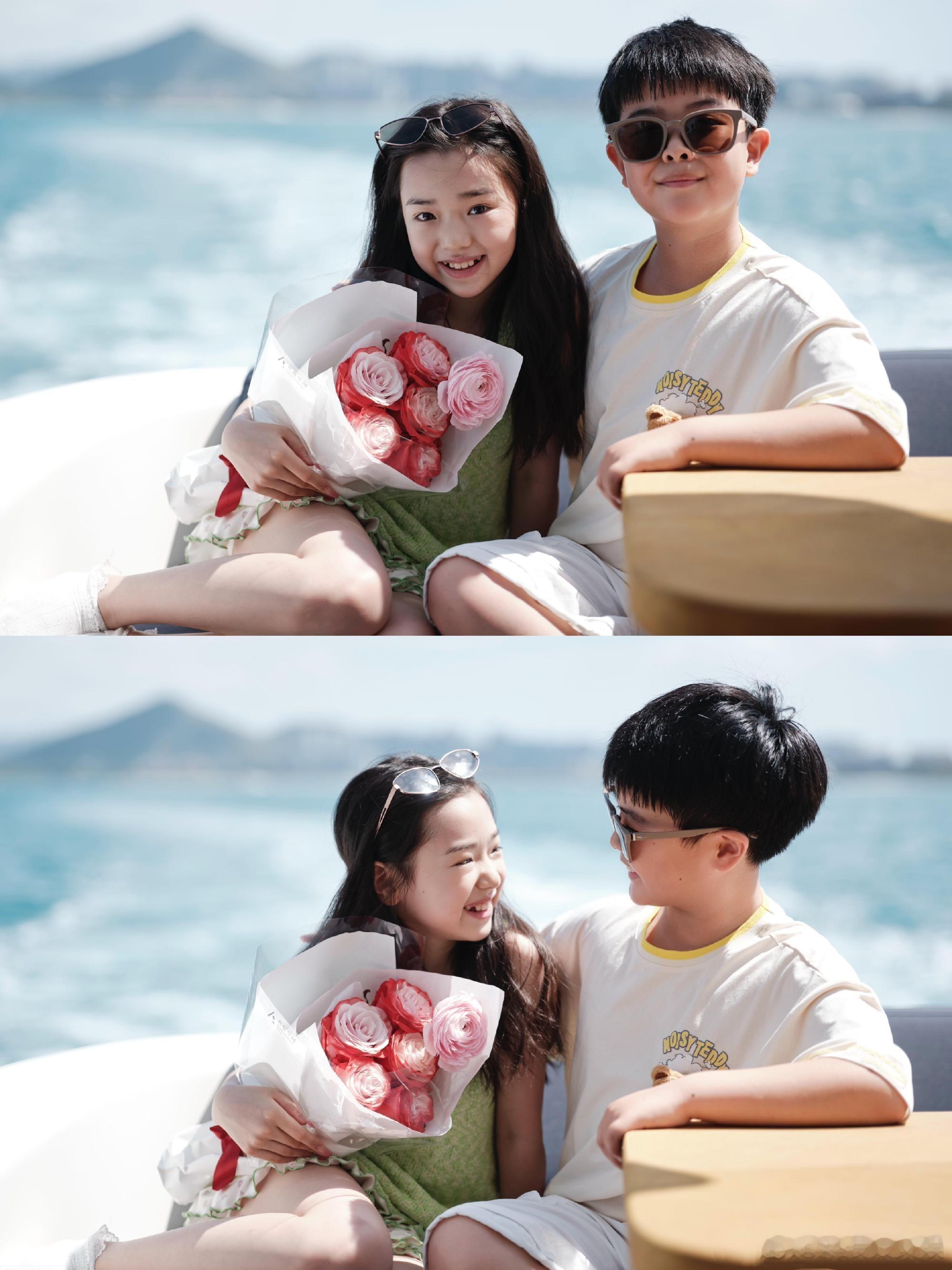 小酒窝朵朵出海合影 小酒窝、朵朵一起出海,合影好可爱啊!青梅竹马~