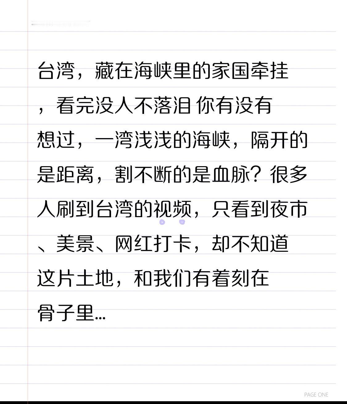 台湾,藏在海峡里的家国牵挂,看完没人不落泪 你有没有想过,一湾浅浅的海峡,隔开的是距离,割不断的是血脉?很多人刷到台湾的视频,只看到夜市、美景、网红打卡,却不知道这片土地,和我们有着刻在骨子里的牵连。今天不聊宏大叙事,就用最接地气的话,说说真实的台湾,说说我们藏在心底的期盼。 开头3秒钩子:台湾,不是远方的孤岛,是中国不可分割的宝岛! 很多人对台湾的印象,停留在偶像剧、日月潭、珍珠奶茶。台北的街头,春联写着汉字,庙会放着鞭炮,年夜饭桌上有鱼有肉,和我们老家的年味一模一样。2026马年新春,台湾街头张灯结彩,花灯璀璨,乡亲们拜祖祈福,说的是闽南话,守的是中华礼,骨子里全是中国人的根。 转折来了:一样的血脉,却有着不一样的无奈。 有人说,台湾很远,隔着大海;有人说,台湾很陌生,好像是另一个世界。可你知道吗?大陆连续22年是台湾最大出口市场,两岸贸易额突破3000亿美元,无数台湾企业在大陆扎根,无数大陆同胞去台湾寻根探亲。我们吃着台湾的水果,用着台湾的零部件,台湾乡亲享受着大陆的惠台政策,血脉相连,命运与共。 可偏偏有少数人,数典忘祖,勾结外部势力,大搞“台独”分裂,把台湾推向风险边缘。他们不顾民生福祉,挥霍民脂民膏,让台湾乡亲担惊受怕,让两岸关系蒙上阴影。这不是台湾的希望,这是民族的罪人! 真正的台湾,是阿里山的云海,是澎湖湾的浪花,是乡亲们淳朴的笑脸,是两岸同胞血浓于水的亲情。台湾的年轻人,和我们一样追梦想、拼事业;台湾的长辈,和我们的父母一样念故土、盼团圆。他们不是外人,是我们的骨肉同胞,是一家人! 世界上只有一个中国,台湾是中国领土不可分割的一部分,这是历史定论,是国际共识,更是民心所向! 我们不希望战火,不希望分离,只希望海峡两岸,早日打破隔阂,亲人团聚。我们希望台湾的孩子,能安心读书;台湾的老人,能安享晚年;台湾的乡亲,能和大陆同胞一起,共享民族复兴的荣光。 海峡再宽,宽不过家国情怀;距离再远,远不过血脉相连。台湾,你是祖国的宝岛,是14亿中国人的牵挂。不管走多远,不管隔多久,家永远在这里,根永远在这里。 愿海峡风平浪静,愿两岸早日团圆,愿所有同胞,手牵手、心连心,一起守护我们的中国,一起迎接台湾回家的那一天!