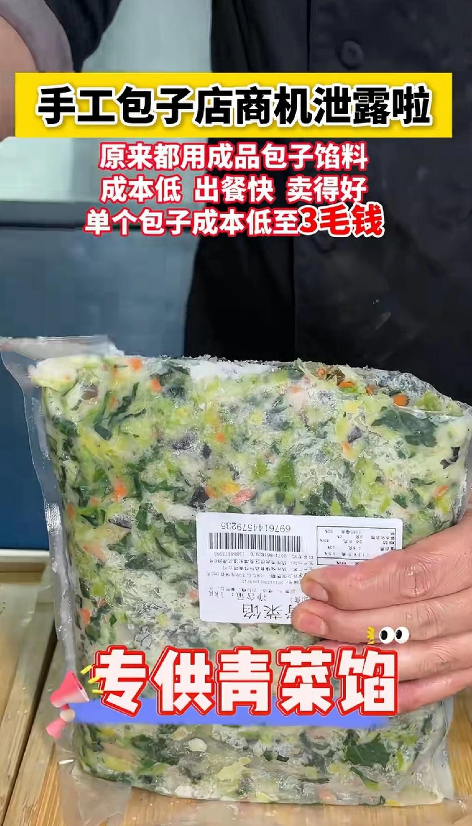 手工包子店商机泄露啦!原来都是用成品包子馅料,成本低,出餐快。 现在很多手工包子店的“商机”真是让人惊掉下巴!原来不少店用成品包子馅料,成本低还出餐快,卖的好。单个包子成本只要3 毛钱。 就拿成都餐饮市场来说,包子是传统美食,可有些商家玩起了猫腻。好多挂着“现做现卖”招牌的包子店,实际是用冻好的预制包加热冒充现做。 门口摆着案板、面团,师傅假装搓几下,实则根本不用来包包子。蒸出的包子大小形状都一样,刚开门就有整屉热乎的,哪有这么快现做出来的。 市场竞争激烈,商家为了压低成本包子铺也是花招百出。 上班的人节奏快,很多时候顾不得食物是否新鲜、是否健康,只求快速出锅就会购买。 有餐饮朋友说,至少三成包子店用预制包,这样能省人工、省成本。咱花现做的钱,却吃到不知放了多久的预制包,真是太坑了!