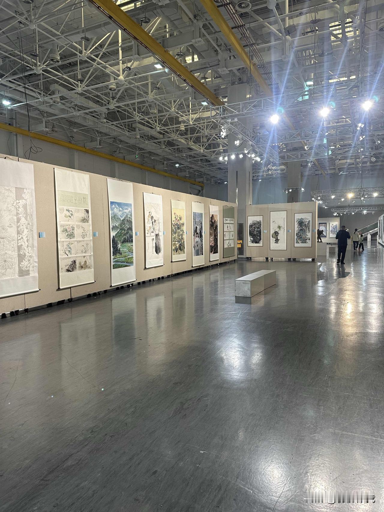 初一看画展,与自己入展作品合照。祝福大家马年大吉!马上有福。