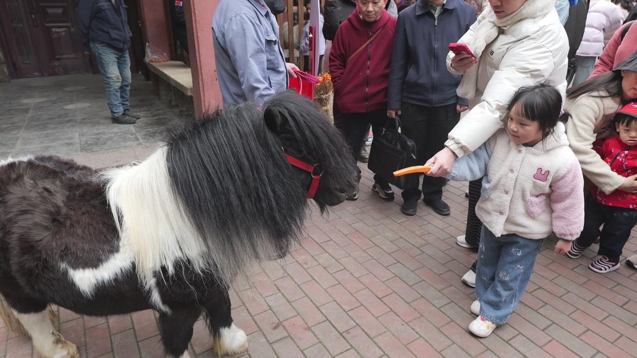 小朋友们对萌马喜爱不已,有家长笑着说,特意穿了带小马图案的衣服,借着马年讨个“马上有钱”的吉祥彩头。还有游客坦言,马年新春遇见可爱矮马十分应景,颜值与好寓意兼具。