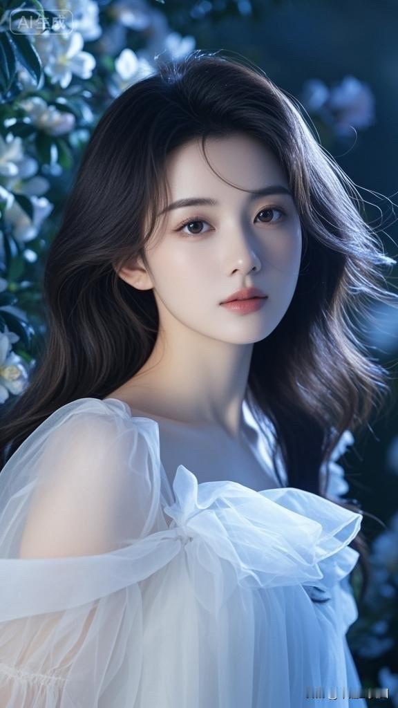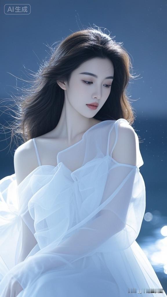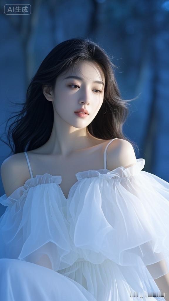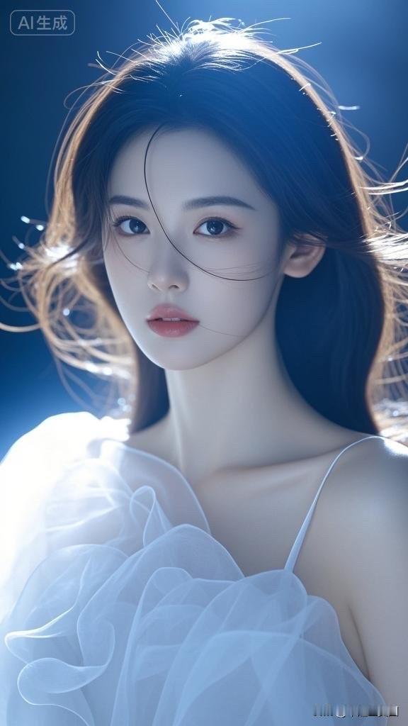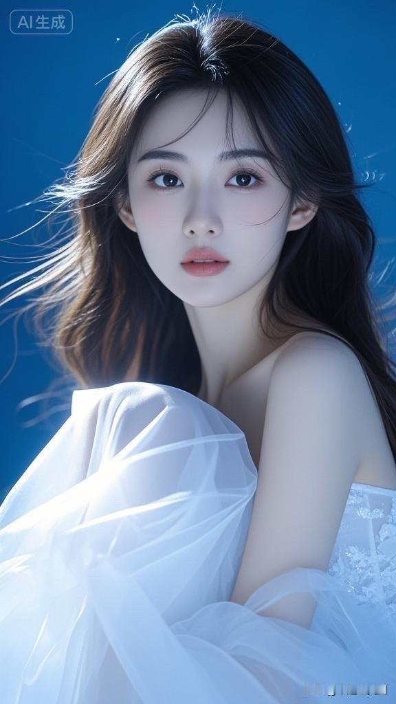 梦幻蓝调,温柔少女,AI生成,唯美瞬间