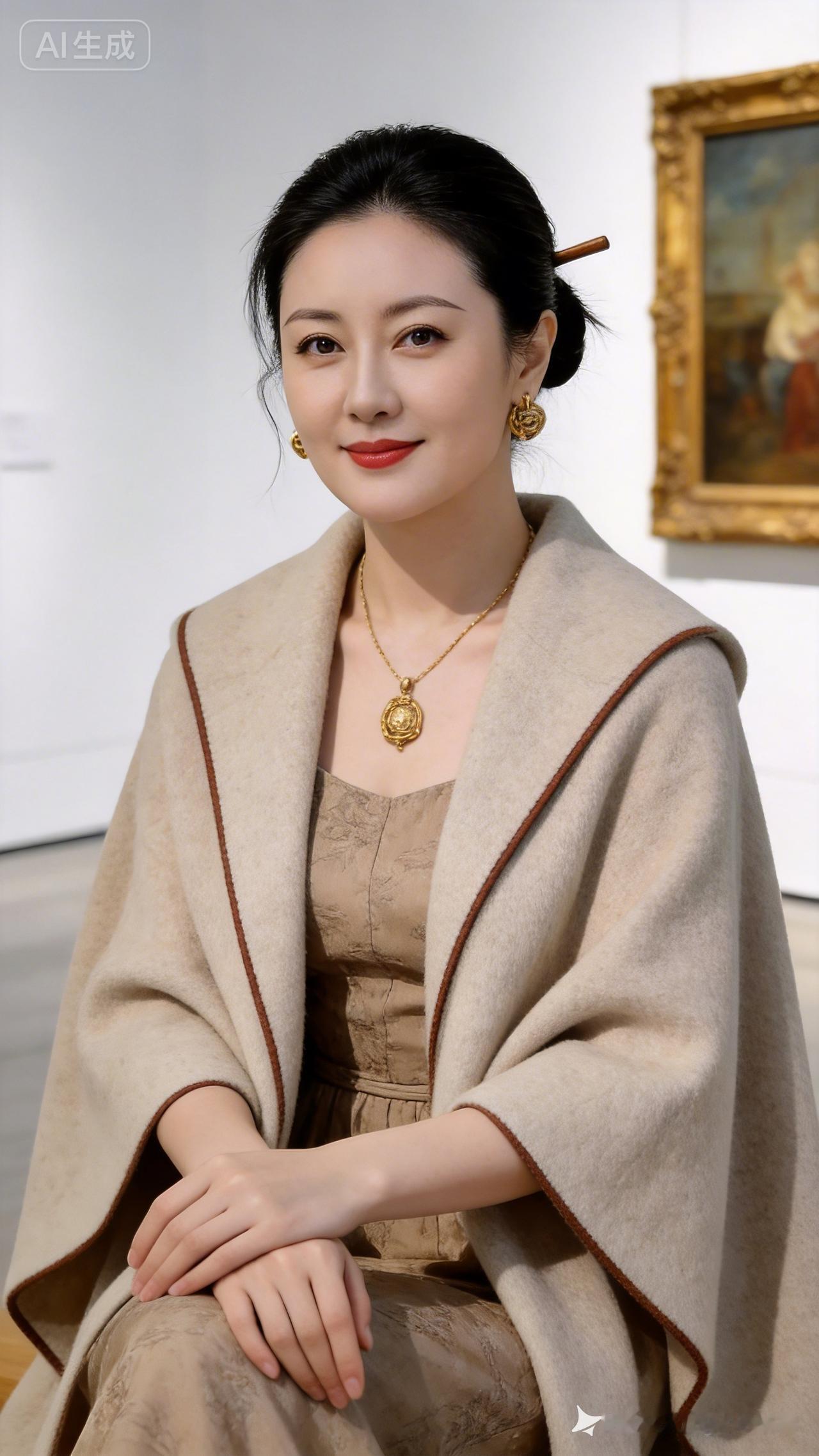 优雅艺术馆里,她笑靥如花,金饰熠熠生辉。