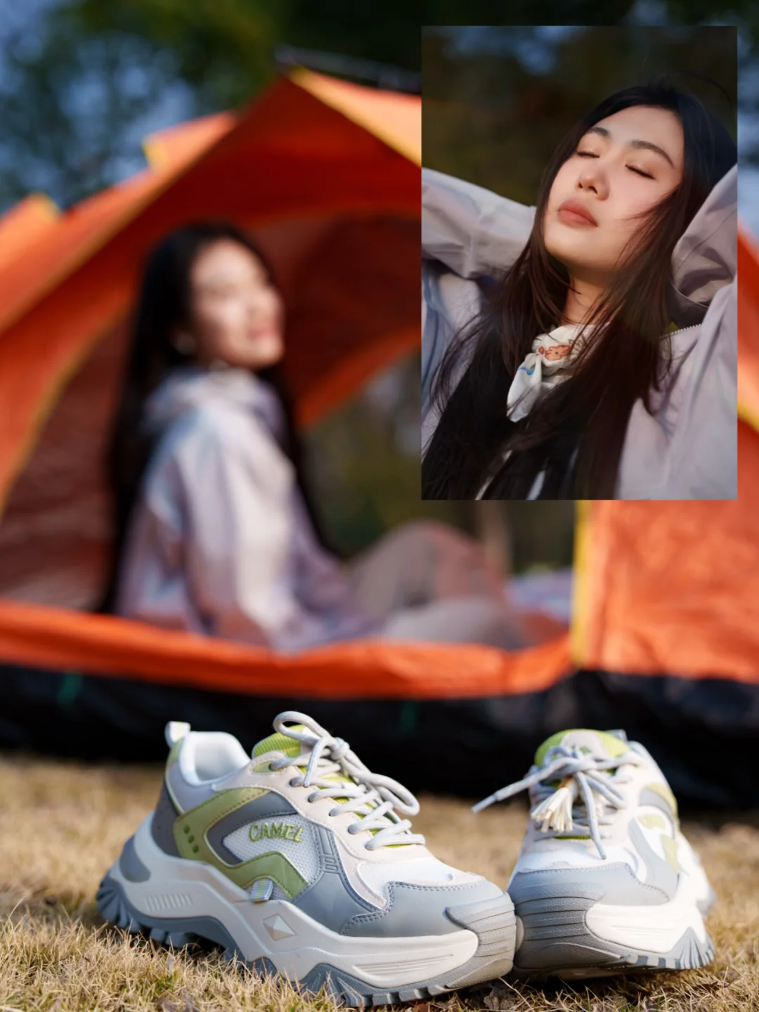 周末露营徒步🏕️ 终于等到一天的好天气 当然要出门去呼吸大自然啦🌳 坐在草坪树林下迎着微风 什么都不做什么都不去想 呼吸自然 允许自己暂时逃离这个世界 今天穿的是 骆驼棉花糖老爹鞋全程舒适 • 5cm厚底增高:隐形拉长比例 徒步也拥有利落线条 • 棉花糖软弹脚感:缓震透气 暴走不累 久穿不闷 • 锯齿防滑大底:草地 碎石路稳抓地面 轻量化户外 • 复古灰绿撞色:穿着挺括有型 户外属性拉满 风格百搭 从城市漫步到近郊徒步 还是去户外活动更适配
