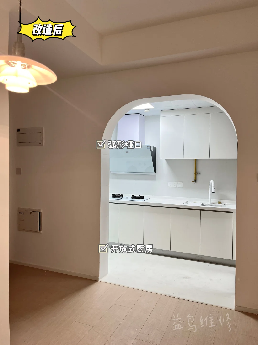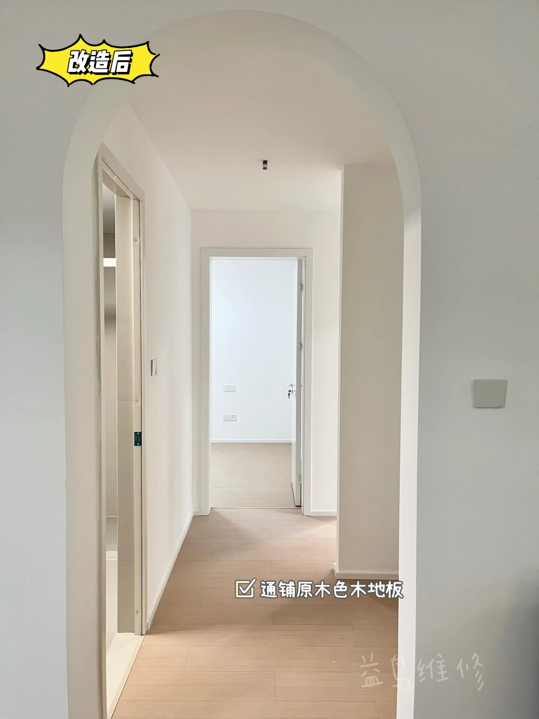 1️⃣ 定制拱形门洞,自带温柔氛围感,同步完成全屋水电优化;