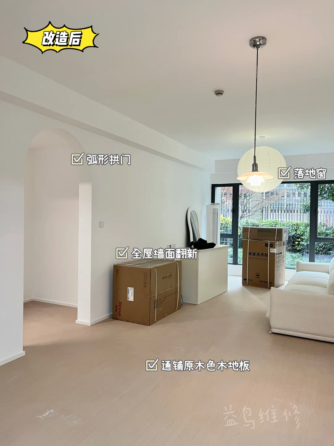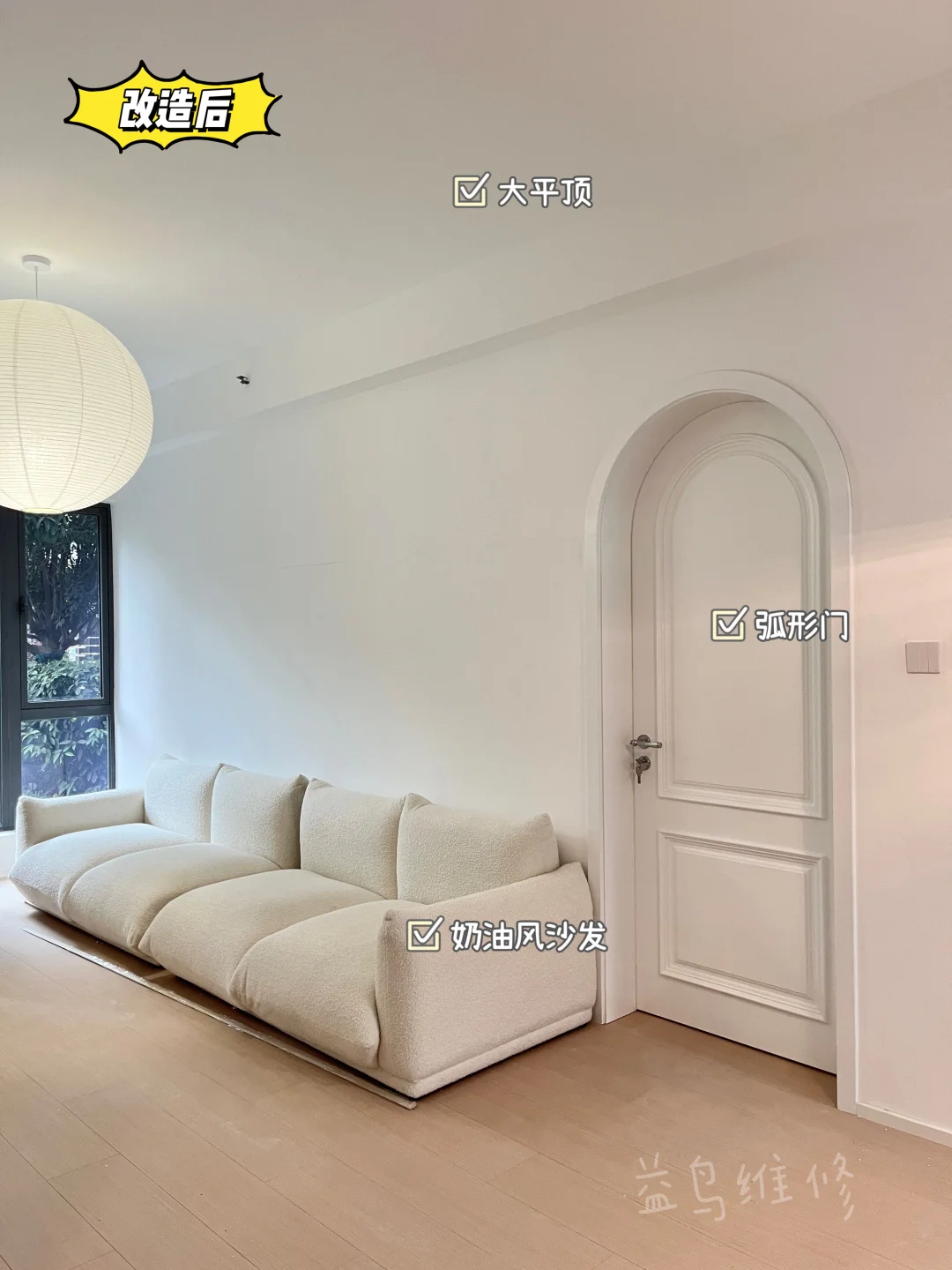 1️⃣全屋墙面彻底铲除翻新,为奶油风奠定干净基底;