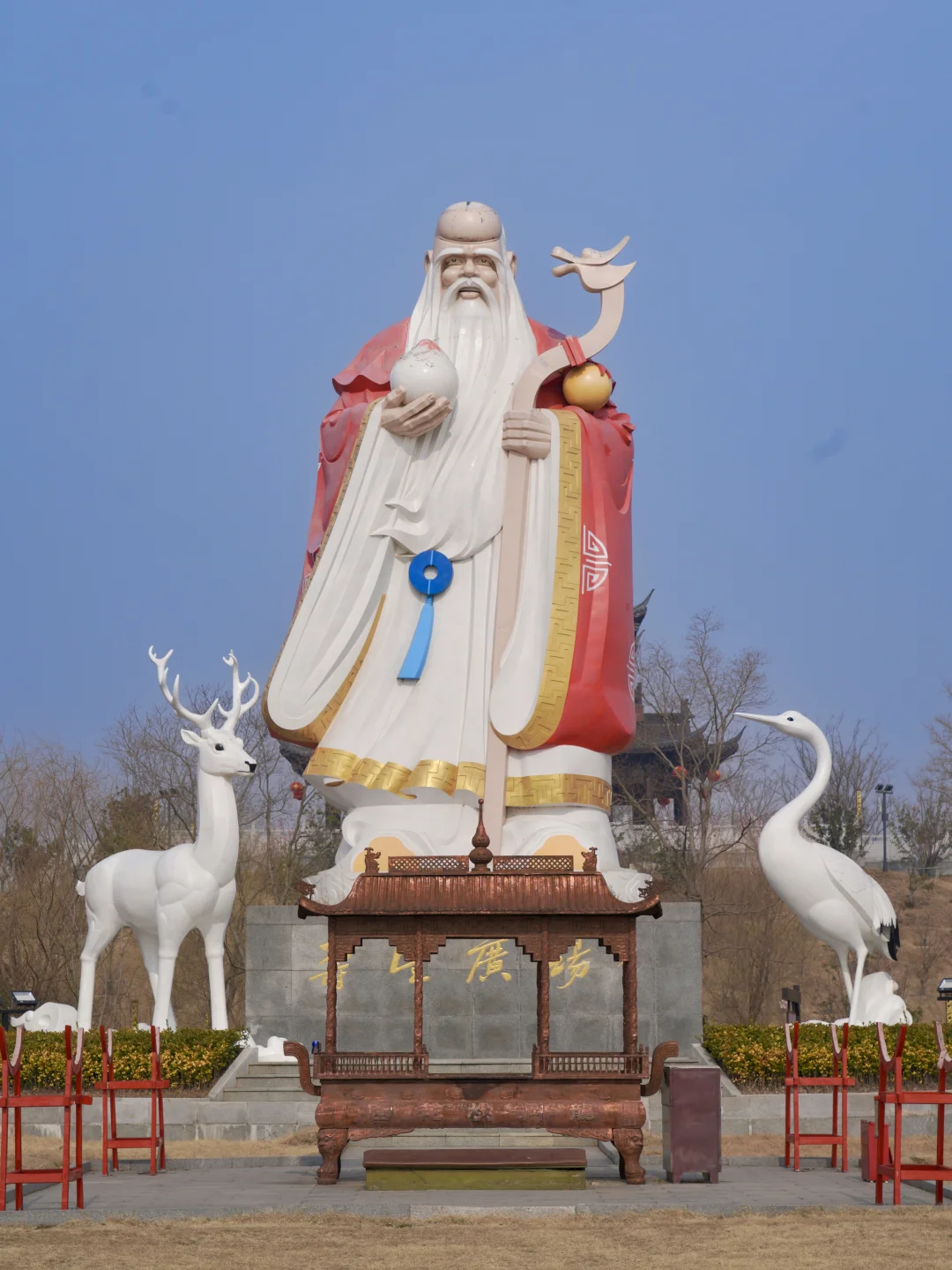 穿过挂满祈福牌的板栗大道,映入眼帘的是坐镇景区的"定海神针",高达12.9米的巨型老寿星!慈眉善目,手捧仙桃,两侧仙鹤与灵鹿相伴,寓意健康、长寿、吉祥。新年期间寿星广场更有祈福仪式舞蹈沾沾寿星福气,祈愿新的一年平安顺遂[鞭炮R]