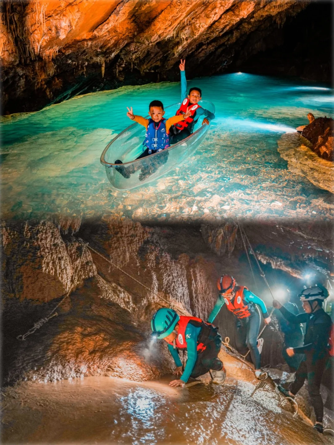 💦 洞穴溯溪探秘:跳下桨板,在浅溪中徒步,寻找隐藏的“地心精灵”(各种奇特的洞穴生物和构造)。