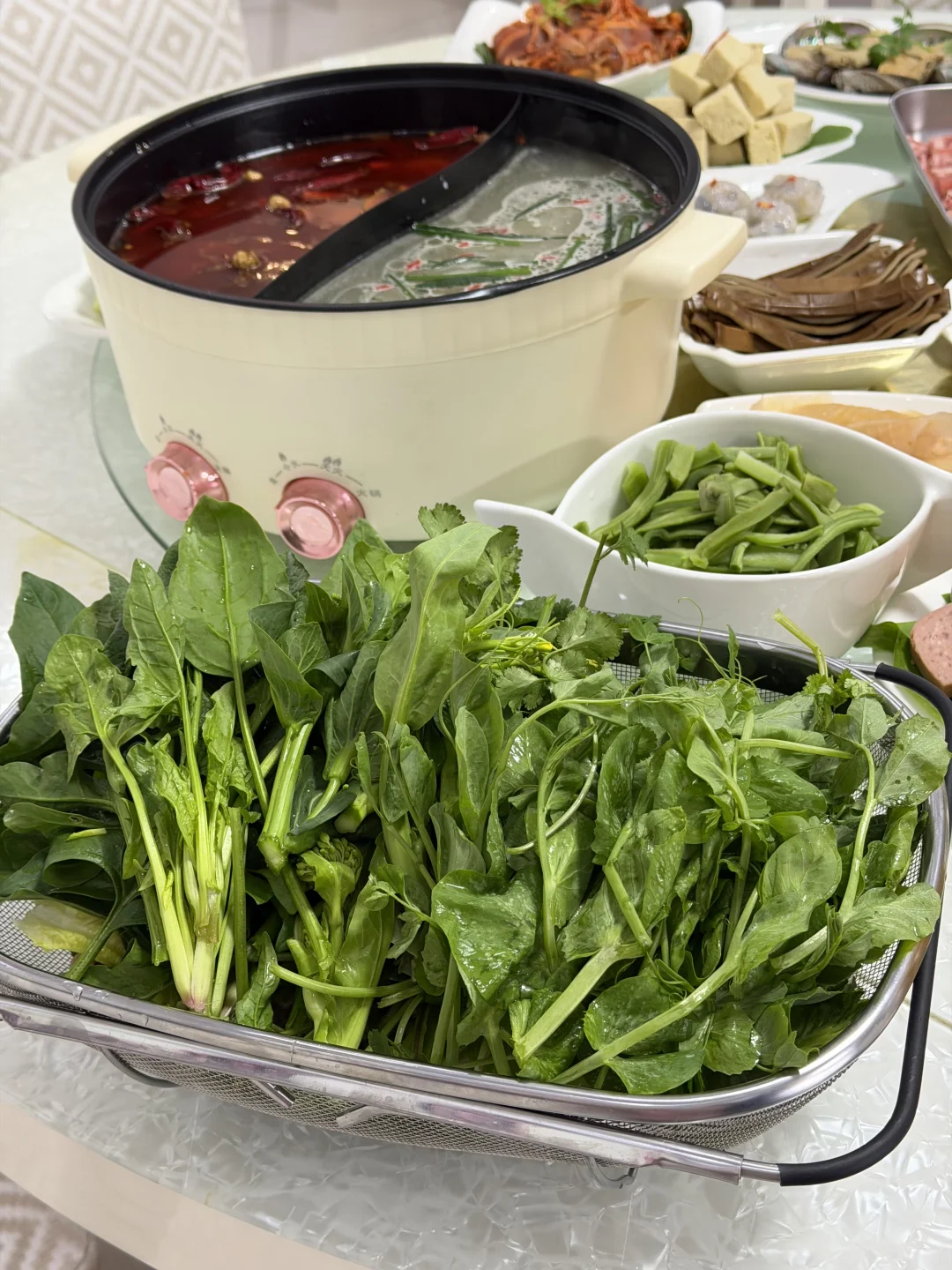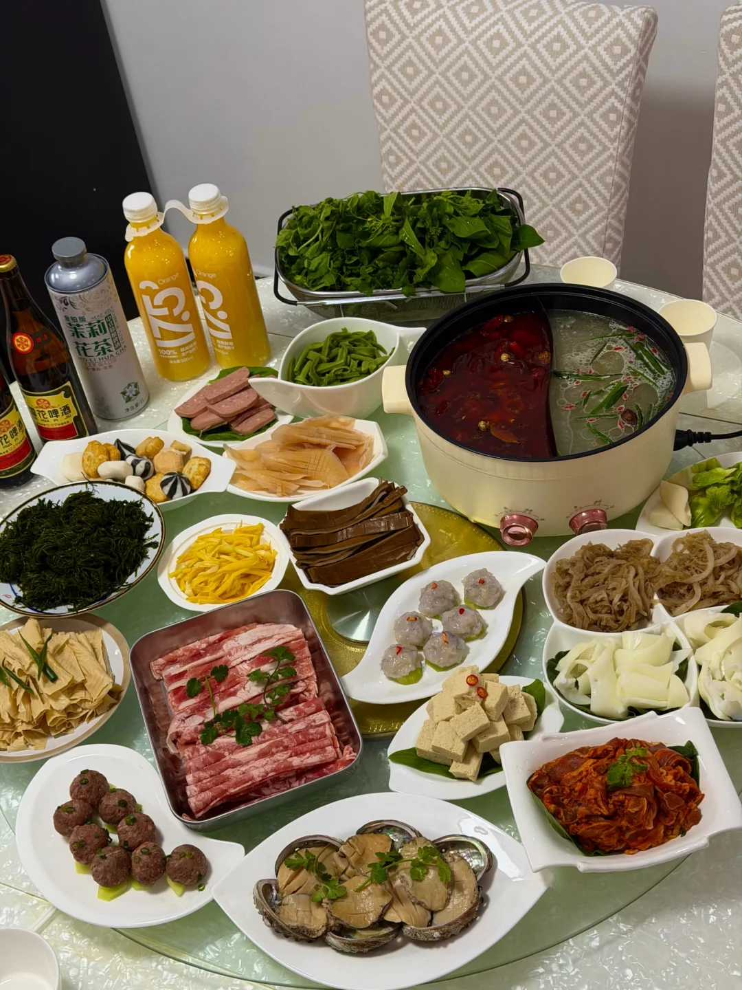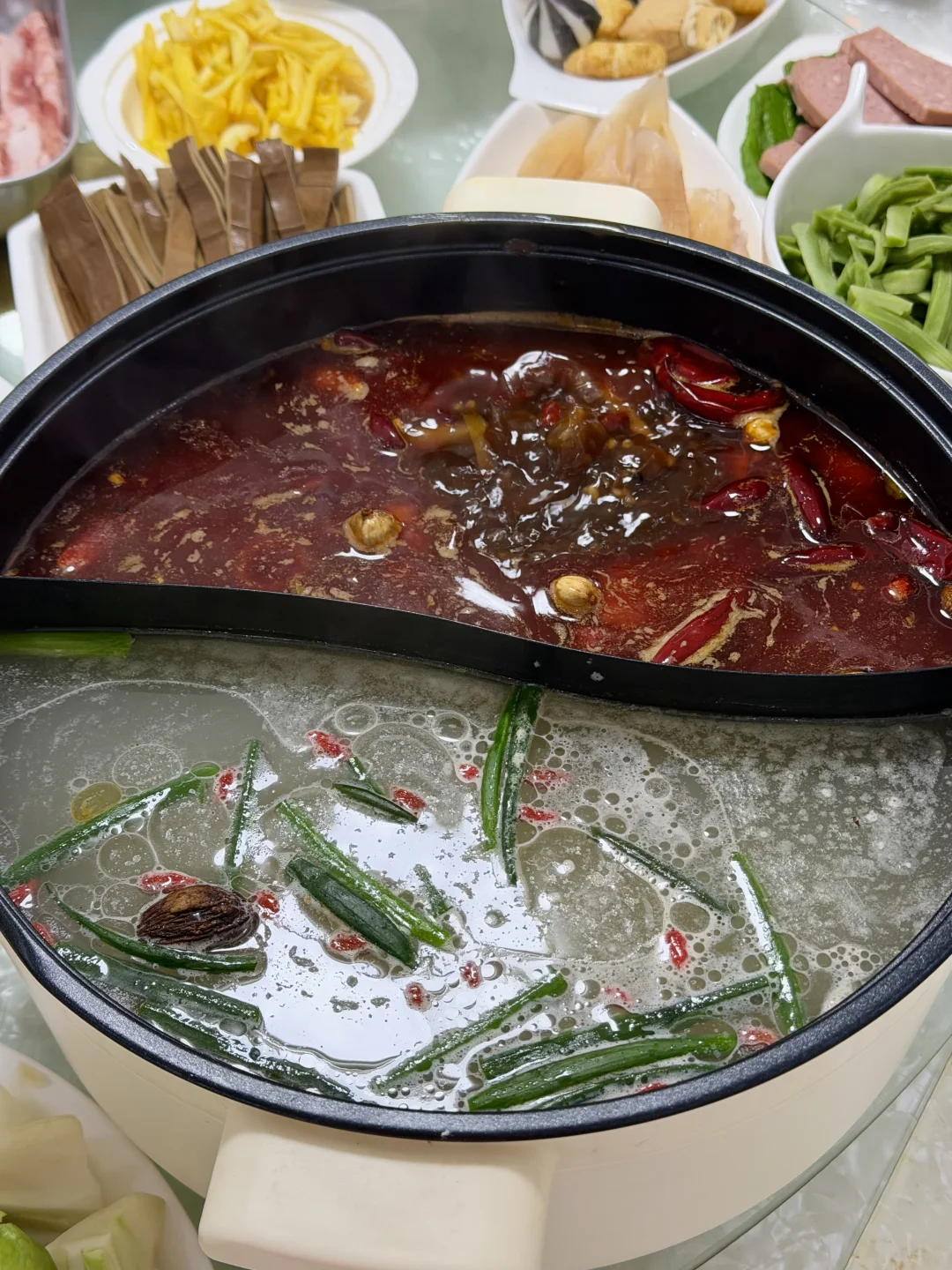第二年团年饭在家吃火锅了很爽,我们一家四口都不喜欢吃剩菜,所以火锅对于我们最适合了热气腾腾的感觉,吃的还很丰盛,最主要的是明天一大早开始去亲戚家拜年了! 今天自己炒的火锅底料够辣够味儿,不辣的烫蔬菜很鲜美 提前祝大家新年快乐呀[烟花R][庆祝R][庆祝R][庆祝R][鞭炮R][鞭炮R][鞭炮R][福R][福R][福R]