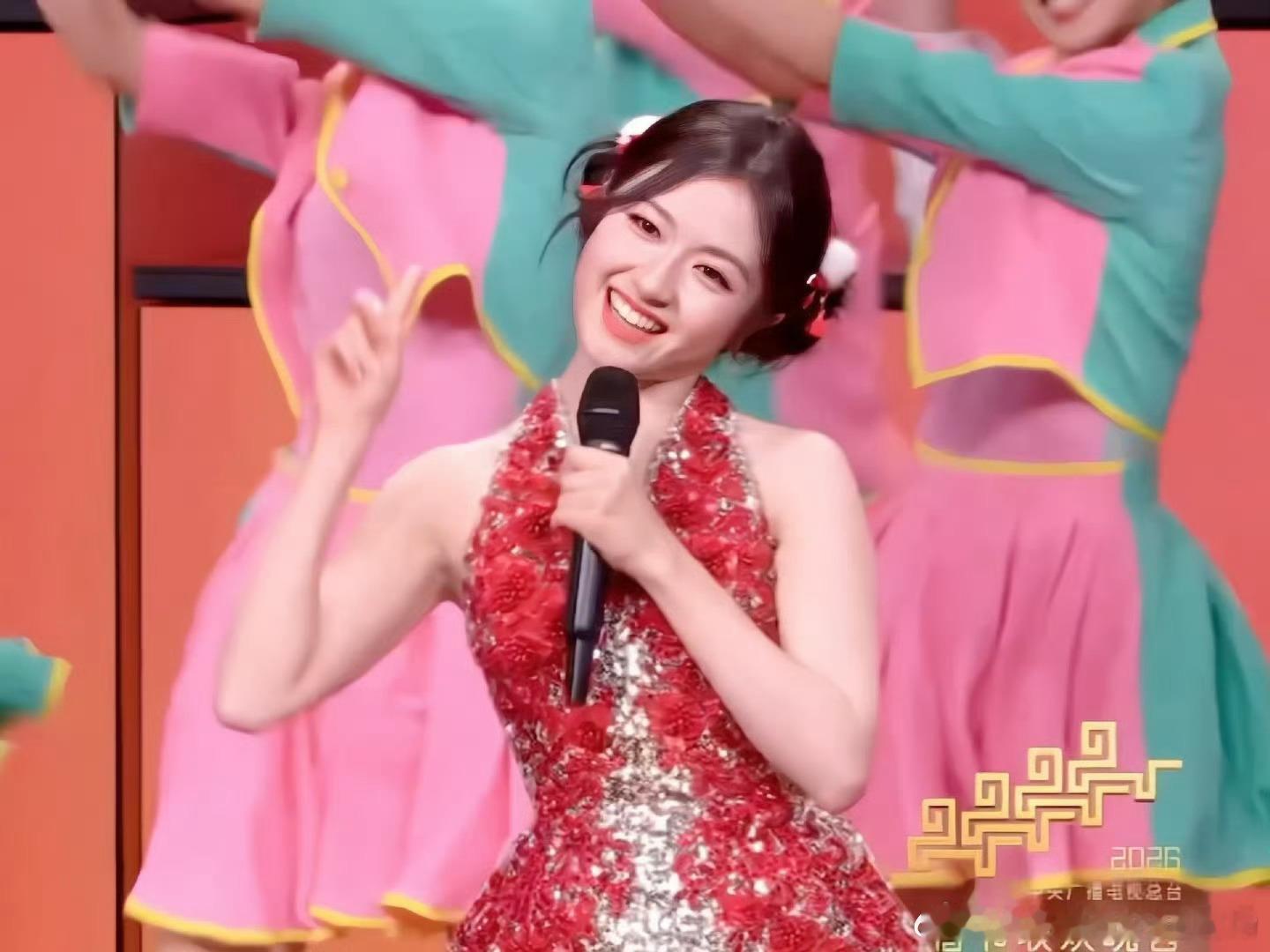 李兰迪善财童女 被李兰迪的善财童女美晕!红金渐变裙精致又喜庆,舞台上摇头晃脑超萌,甜笑自带福运,承包新春所有美好。