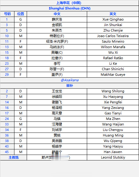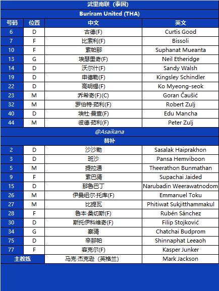 虎扑02月17日讯北京时间今晚20:15,上海申花即将前往客场迎战武里南联,赛前双方公布首发名单。