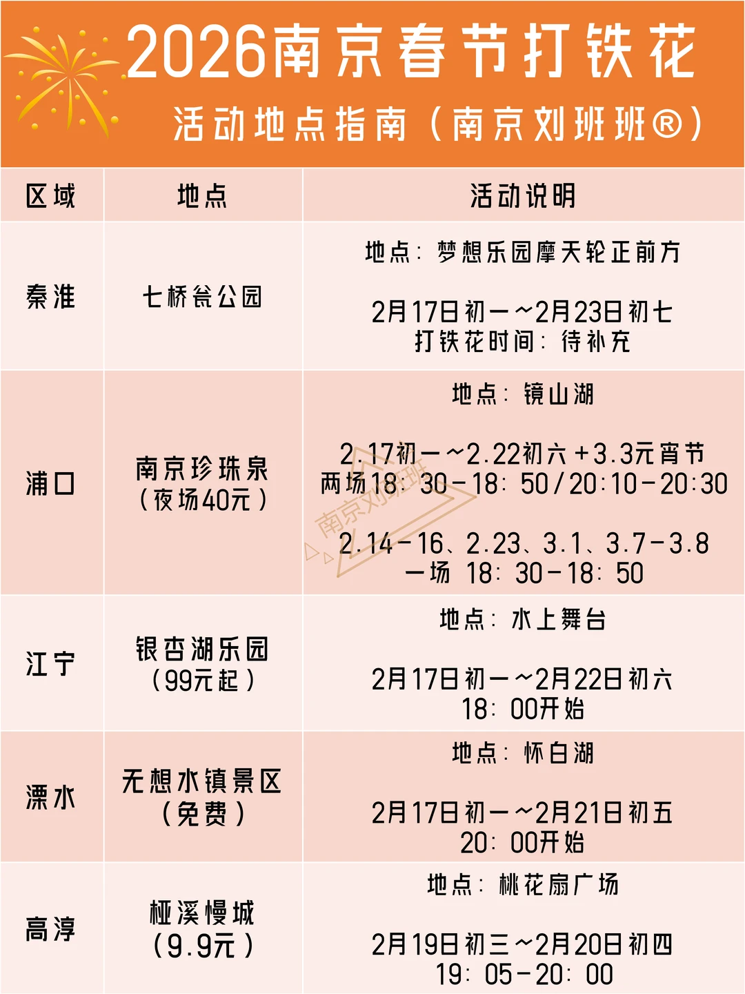 📖打铁花的时间和地点详情,可以参考图二信息,仅供参考,具体以官方实际为准~