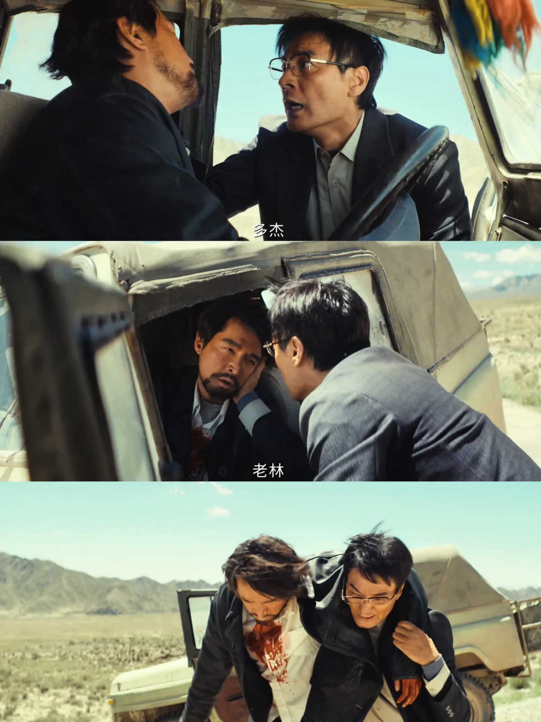 看到重伤的多杰,他整个人都慌了,疯了一样踩油门开车,眼神里全是慌乱、恐惧和不敢相信,他拼尽全力想挽回,却还是弄丢了这个挚友。